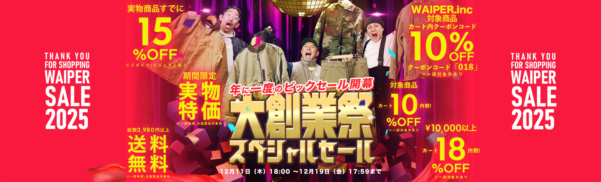 私たちWAIPERは、ファッションのルーツとして欠かせない「ミリタリー」というカテゴリーを中心に、年齢や性別を問わず、ファッションとしてのミリタリーの楽しさを広く伝えることを使命としています。