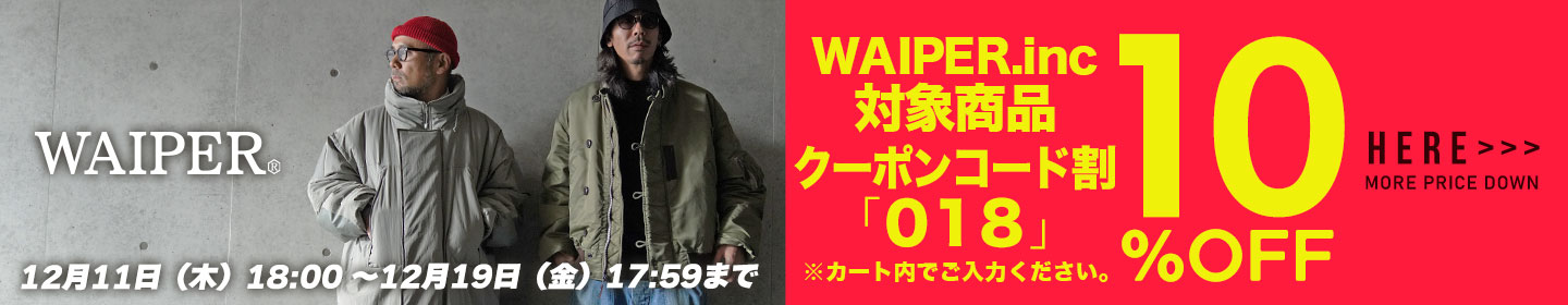 オリジナルブランド「WAIPER.INC」をはじめ、自社商品開発やブランドとのコラボレーション、さらにはセレクトブランドのバイイングを手掛け、ミリタリーを中心にしたセレクトショップとして運営しています。