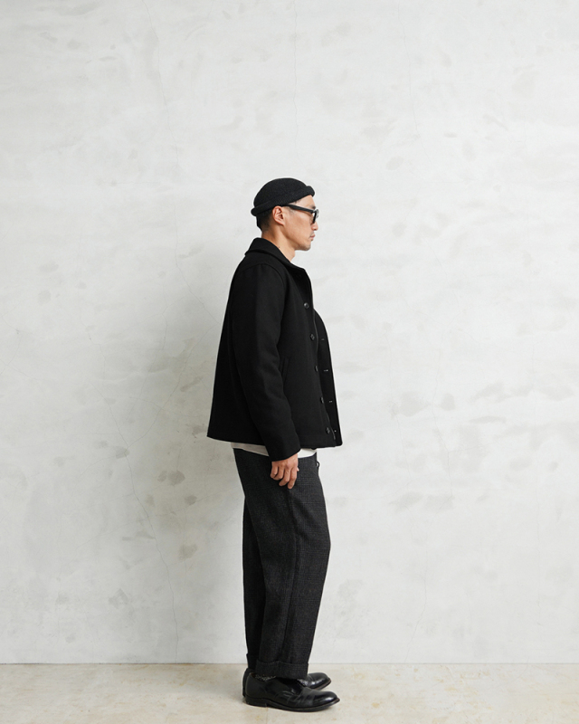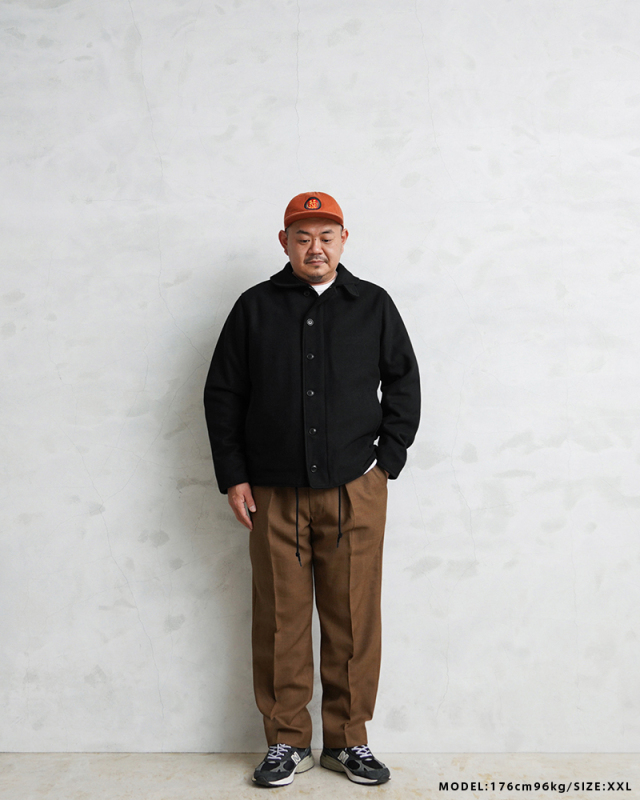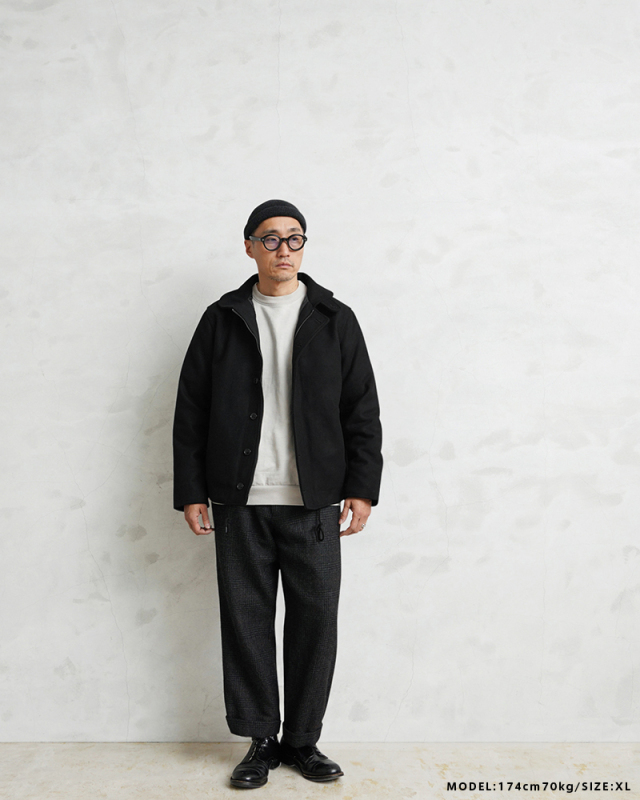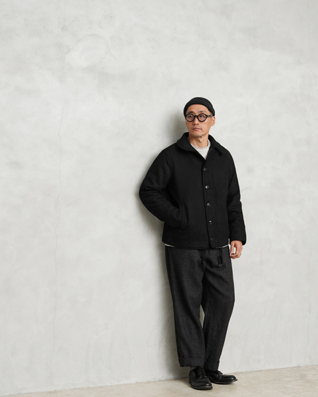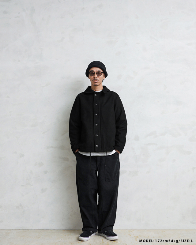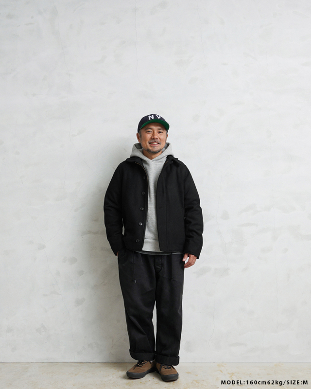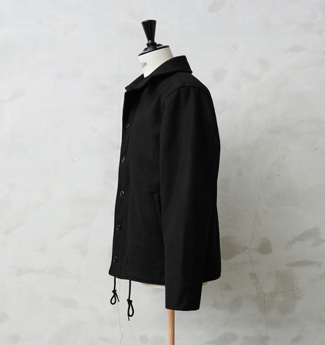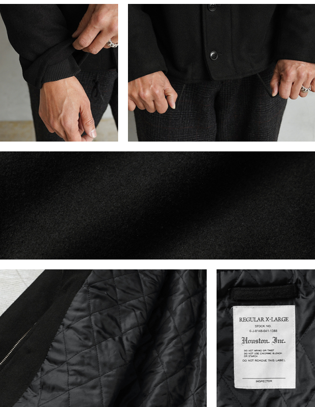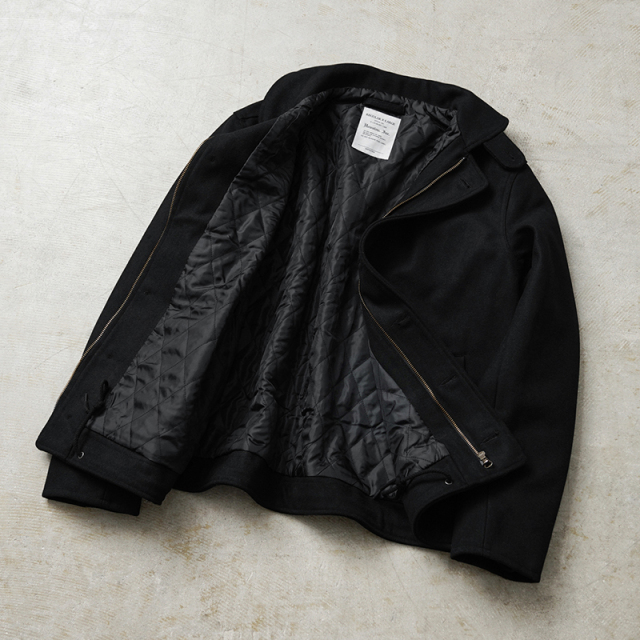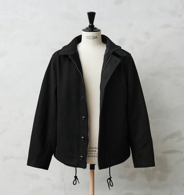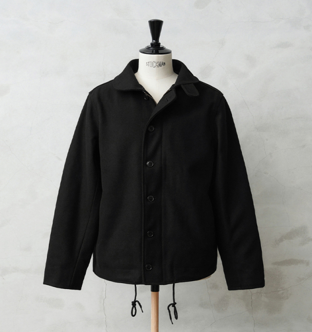 HOUSTONに別注をかけた当店独占販売モデルのメルトンN-1デッキジャケットです。アメリカ海軍の艦艇搭乗員のためのデッキジャケットをメルトン素材でスタイリッシュにアレンジしました。フロントはボタンとジップによる構造、袖部分は内部にリブで、風の進入を防ぎます。ジャケット内側はキルティングの中綿入りと防寒性も高くなっています。奇麗なシルエットで、細いパンツにもバッチリ合いますし、ルーズなパンツに合わせても綺麗なAラインを簡単に作ることが可能です。飽きの来ないシンプルなデザインがご自身の定番として重宝するアウターです。