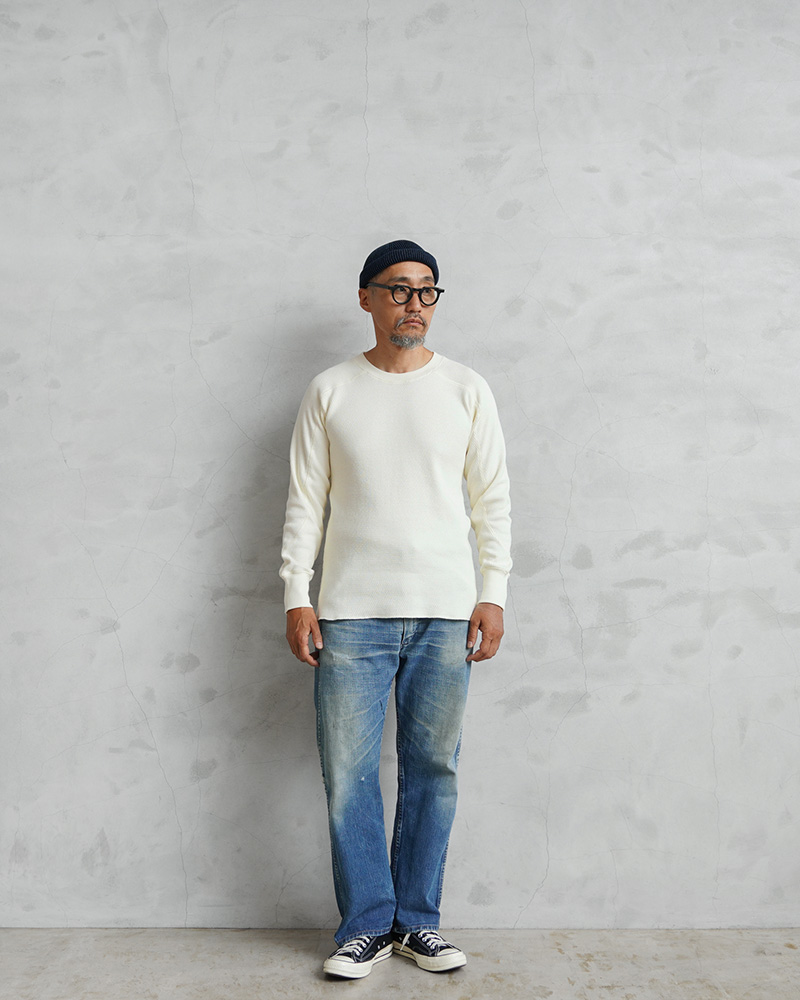HOUSTONから、クラシックなミリタリーテイスト満載のサーマル長袖Tシャツが登場しました。ミリタリーアイテム定番のサーマルTシャツをHOUSTON独自の感性にてモディファイ。保温性が高く、柔らかな肌触りで快適な着心地のワッフル編み(サーマル)のリラックス感のある生地感は、ルームウェアやスポーツウエアとしてはもちろん、シャツのインナーに合わせてレイヤードを楽しんだり、一枚でさらっと着たり、様々なシーンで活躍します。肩の可動域が広く、動きやすいラグランスリーブ。体に程よくフィットするスタンダードなシルエットと、丈夫なボディ。流行にとらわれることなく長くデイリー使いに重宝し、何枚あっても間違いない究極の定番アイテムです。