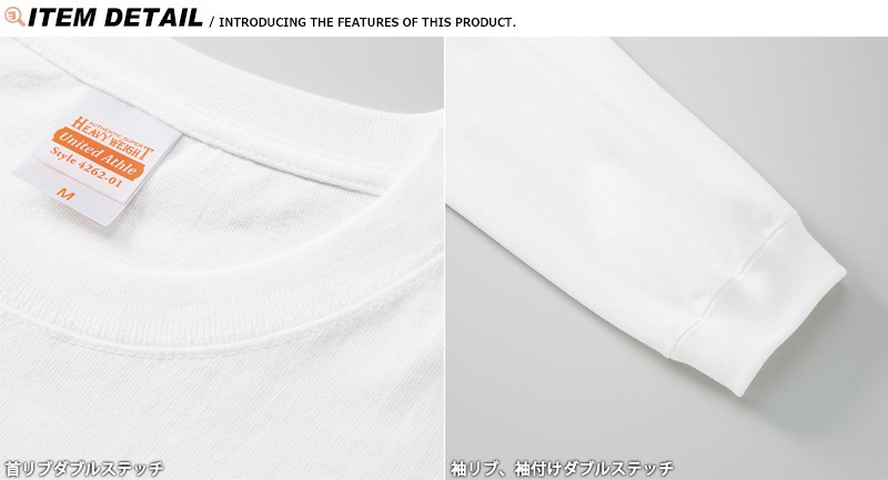 | 商品名 | United Athle ユナイテッドアスレ 7.1オンス ヘヴィーウェイト ロングスリーブ Tシャツ(1.6インチリブ) 4262-01 |