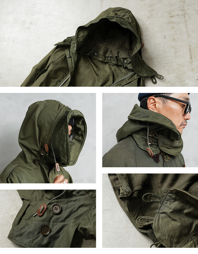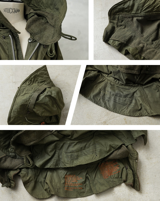 非常に希少でレアな商品が入荷しました。米軍実物放出のヴィンテージフードです。半世紀以上経っているにも関わらず実物新品デッドストックと奇跡に近い状態での発見です。本来、M-51パーカーはフードとシェル(パーカー)が一体型になっている為、単独のフードはないと思われがちですが、シェル自体についたフード部分の内側に装着可能で、防寒性能をアップさせることのできるアイテムです!装着するとM-51パーカーのフードは1枚布で薄いのですが、このフードを装着すると重厚感が出て格段にかっこよくなります。もちろんM-65フィッシュテールパーカーやM-65フィールドジャケットにも装着できます。本当に久しぶりに入荷した非常に希少なアイテムです。ぜひともこの機会に本物のミリタリーアイテムに触れてみてください。