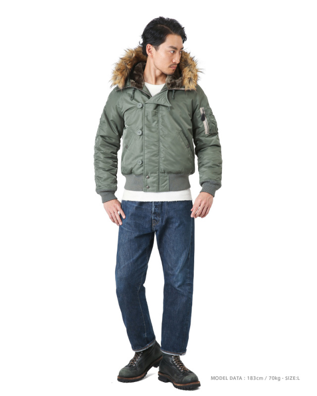 | 商品説明 | AVIREX アビレックス N-2Bフライトジャケット コマーシャルモデル のご紹介です。 品名:N-2B COMMERCIAL 品番:6152176 AVIREXより、ヘビーゾーン向けフライトジャケットの代表格「N-2B」をコマーシャルモデル(=民間向け)としてアレンジした一着が登場。日本人の体型にマッチするややタイト目のシルエットに変更されているほか、所々にAVIREXらしいアレンジが施されています。 袖口と裾部分はリブ仕様となっており、冷たい風が入り込むのを防いで保温効果を高めています。中綿には暖かさと軽さを兼ね備えた「THERMOLITE®」を採用。中綿のファイバー素材は断面が中空となっており、その中に取りこまれた空気の層によって高い保温性を実現しています。更に皮膚からの余剰な水分を素早く吸収・蒸散するので着心地も快適です。 ディテール ・ファスナーにて左右に分割できるフード ・フードファーはファスナーにより脱着可能 ・袖口部分は防風性・防寒性に優れたリブ袖 ・前開きはファスナーとボタンの両方で開閉 ・前身頃にはスナップボタンにて開閉するポケットを2つ配置 ・左腕にはユーティリティポケットを装備 ・防寒性に優れたアクリルボア製のフードライニング ・ウエストコードにより腰回りを絞る事が可能。 N-2Bフライトジャケット 1950年代初期にヘビーゾーン(-10℃~-30℃)用のフライトジャケットとして開発されたN-2シリーズ。初期に登場したA型はエアフォースブルーのカラーリングが目立ってしまう上に太陽光線を吸収し熱が籠もるといった問題点がありました。それらを解消した改良モデルとして登場したのがこのB型、N-2Bフライトジャケットです。狭いコックピット内でもかさばらない様、ファスナーにより分割できるフードデザインが特徴的です。 当店はAVIREX正規販売店ですので安心してお買い求め下さい。 |