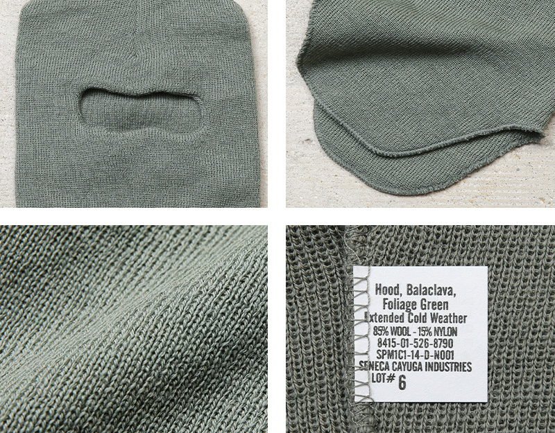 米軍実物のバラクラバです。 寒冷地での任務や訓練を想定して採用されてきた装備で、顔全体から首元までをしっかり覆い、防寒性と防風性に優れています。長年にわたり米軍で使用されてきた実績があり、実用性を重視した作りが特徴です。素材にはウールとナイロンの混紡素材を使用。ウールならではの暖かさに、ナイロンの丈夫さをプラスしており、日常使いでも扱いやすい仕上がりです。シンプルで無駄のないデザインなので、ヘルメットやゴーグルとも合わせやすくなっています。単品での使用はもちろん、スキー、スノーボード、自転車、バイクにも着用可能。デイリー使いからアウトドアまで幅広いシーンで活躍する防寒アイテムです。