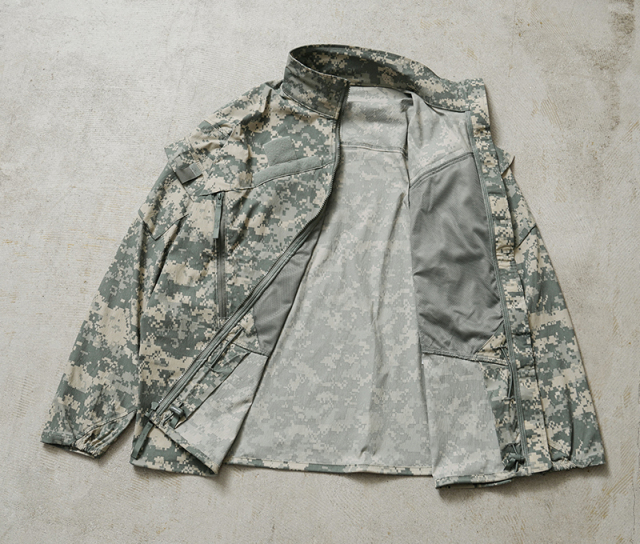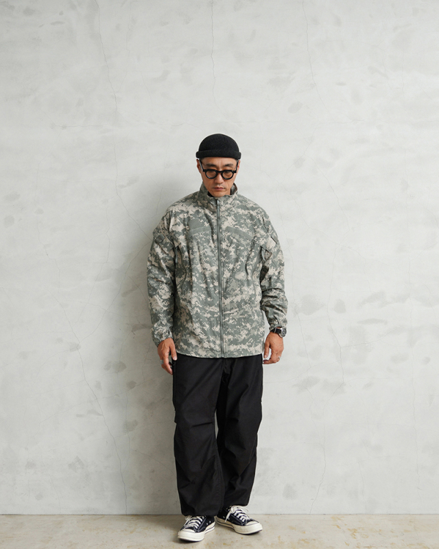 実物 新品 デッドストック 米軍 ECWCS GEN III LEVEL 4 ウィンドジャケット のご紹介です。 制式名称:JACKET,WIND COLD WEATHER(GEN III) 米軍 ECWCS 第三世代(ジェネレーション3)は7種類のトップスと5種類のボトムから構成された、様々な気候やシチュエーションに対応したシステムです。 出回ることの少ないLEVEL4はナイロンに伸縮性のあるスパンデックスが混紡された素材感が特徴です。遮風性と撥水性に優れた素材は軽い着心地で、肌寒い時のウィンドジャケットとして重宝します。 近年人気の高まりを感じるユニバーサルカモに、フロントにはハの字で配置されたベルクロ、胸元のジッパーはメッシュの内袋のあるポケットになっており、ベンチレーションにもなっています。 ジャケット自体は中綿などは入ってないため単体での着用はもちろん、レイヤリングとして体温調整も可能。レベル3のフリースとの組み合わせにもぴったりです。 |