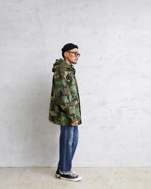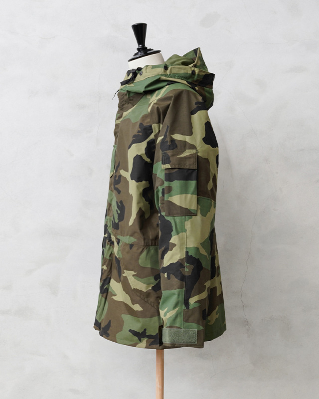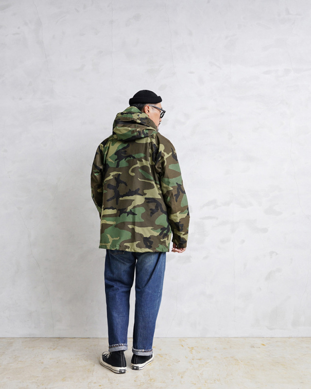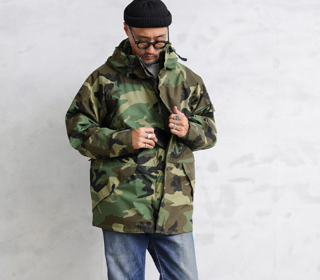 | 商品説明 | 実物 新品 デッドストック 米軍 ECWCS Gen1型パーカー ウッドランド迷彩のご紹介です。 制式名称:PARKA, COLD WEATHER, CAMOUFLAGE 防水性、保温性、耐久性のある透湿性防水生地を搭載した、ミリタリーアイテムの最高峰「Gen1 ECWCS パーカー」です。フードに真鍮カシメが装備されており、より重厚感がありスタイリッシュな着こなしができます。フロント下部ポケットが斜めについた通称、1stタイプ(ファースト タイプ)、タイプ1(TYPE-1)、ジェネレーション1とも呼ばれています。 ECWCS(EXTENDED COLD WEATHER CLOTHING SYSTEM)は1980年代後半に米軍において制式採用された極寒冷気候向けのレイヤリングシステムで、拡張式寒冷地被服システムと呼ばれています。パーカーの他に化繊のインナーウェア/ライナーを活動地域の気候に合わせて組み替えるシステムとなっており、組み合わせにより様々な気候に対応できる画期的な被服システムへと発展しました。 収納は左右のフラップポケット、左腕のユーティリティポケット、ジッパー横にベルクロ開閉のインナーポケットが両サイドに備わっています。脇下にはベンチレーションジップが設けられており、着たままでの体温調節が可能です。ラグランスリーブのデザインなので広い可動域で動きやすく、袖の肘側は2重に補強されています。 フードにはブリム付きのデザインでドローコードで調節も可能です。袖先はベルクロで調節可能、前立てには階級章などを取り付けるスナップボタン開閉のループが備わっています。ウエスト内側の風や雪の侵入を抑えるパウダーガードやドローコードなど細部までこだわりのディテールとなっています。 夏は高性能レインウェア、春秋は軽く羽織れる軽アウター、冬はフリースライナーなどをインナーに着こむ事で防寒性がさらに増し保温性抜群のアウターになってくれます。 すでに放出自体が少なく、希少価値が高く、現地でもどんどん高騰している名品です。是非この機会にどうぞ! |