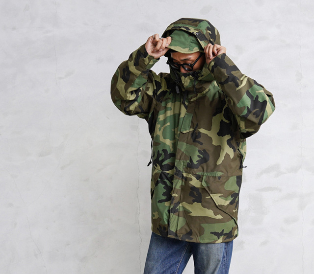 防水性・保温性・耐久性のある透湿性防水生地を搭載した、ミリタリーアイテムの最高峰「実物米軍 ECWCS パーカー 」です。フードに真鍮カシメが装備されており、より重厚感がありスタイリッシュな着こなしができます。フロント下部ポケットが斜めについた初期型です。通称 1st タイプ(ファースト タイプ)やタイプ1(TYPE-1)、ジェネレーション1とも呼ばれています。全天候仕様のパーカで様々な場面、気候に適応したアウターとして着用できる事が人気の高い理由かと思います。すでに放出自体が少なく、希少価値が高く、現地でもどんどん高騰している名品です。是非この機会にどうぞ!