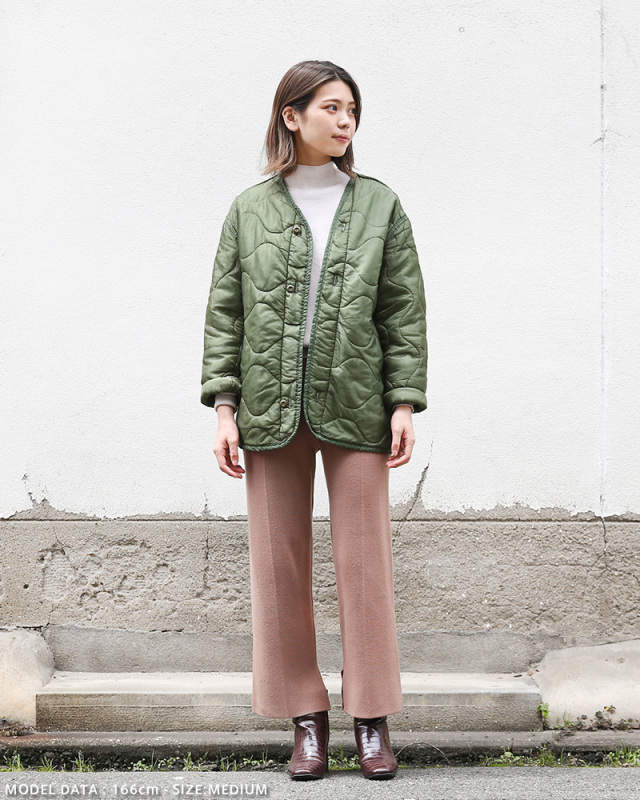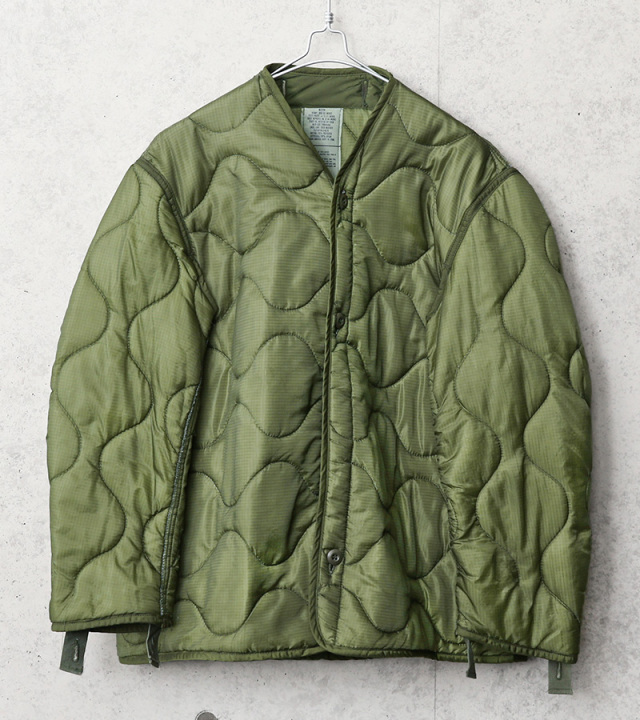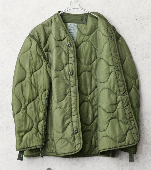 | 商品説明 | 実物 新品 デッドストック 米軍 M-65 フィールドジャケット用ライナーのご紹介です。 制式名称:LINER,COLD WEATHER COAT 米軍より放出されたM-65フィールドジャケット用のキルティングライナーです。 M-65フィールドジャケットは、このキルティングライナーを装着する事によってその防寒性を100%発揮します。素材には軽量なナイロンが使用されおり、中綿入りのオニオンキルティングが見た目からは想像できないほど軽く保温性に優れています。 多くのファッションブランドでも、ライナーをサンプリングしたライナージャケットを多数リリースしていますし、近年ではそのデザイン性の高さ、機能性、保温性の高さからライナーをキルティングジャケットとして着用したり、ワッペンでカスタマイズしたりとリメイクのボディーとして使用されているものも多く目にします。 性別を問わずアイデア次第で様々な着こなしが出来る面白いアイテムです。 |
