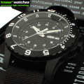![]() Stocker & Yale社は数年前より、スイスmb-microtec社が開発・製造していたTRASERシステムを米軍用コンパスに使用していました。 この革新的な発光技術を軍用時計に活かすことができるのでは・・・。 こうして世界で唯一、Traserシステムを製造できるスイスmb-microtec社が米国ミリタリーウオッチの歴史に参加することになりました。 TRASERシステムを文字盤のインデックスと指針に使用した新たな時計のプロトタイプは国防省による、過酷で厳しい数々のテストに合格しました。こうしてH3ウオッチ・シリーズは米ミリタリーに正式に採用が決まり、1980年?2000年の間に実に100万個以上の時計が米軍に納品され、実際の様々なミッションに使用され、50万個以上が一般の市場でも販売されました。2000年にStocker & Yale社が時計部門の撤退を決意した後、TRASERシステムの開発元のスイスmb-microtec社が、特に本物の軍関係品を収集してるコレクターの強い要望により、ミルスペック・モデル(MIL-W-46374F)・H3シリーズを甦らせました。 |