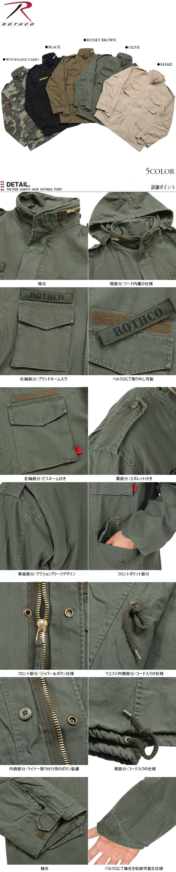 | 商品名 | ROTHCO ロスコ VINTAGE M-65ジャケットOLIVE |