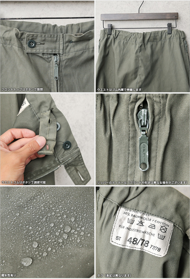 | 商品説明 | 実物 USED スイス軍 マウンテン オーバーパンツのご紹介です。 今や放出がなかなか無く希少なスイス軍山岳隊のパンツです。本来パンツの上から着用するオーバーパンツのため、両サイドのポケットは内側へのアクセスポケットになっています。人より差をつけたい人にもおすすめです。 コットン×ポリエステル素材のパンツは耐久性、撥水性にも優れており、ウエストには幅広なゴム内蔵で伸縮します。ウエストゴムはボタンで調節可能です。 裾には40cmほどのジッパーが付いています。裾口はコードで絞ることができます。ブーツインして履いてもかっこいいです。シルエットも細からず、太からずの無骨な感じで雰囲気が出ています。 希少な実物だけが出せる存在感。是非本物のオーバーパンツを手に入れてみて下さい。 |