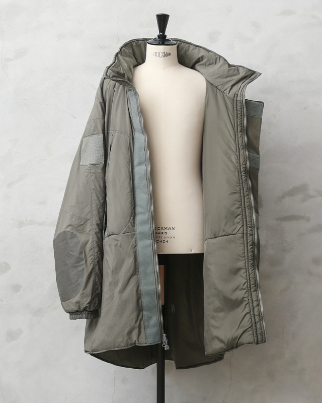 | 商品説明 | 実物 新品 デッドストック 米軍 PCU LEVEL7 TYPE-2 モンスターパーカーのご紹介です。 制式名称:PCU LEVEL 7 JACKET TYPE 2 SHELL 米国特殊作戦軍(United States Special Operations Forces)通称SOFで採用されていたPCUは、PROTECTIVE COMBAT UNIFORMの略称で、米軍のECWCSと同様の設計思想により7段階のレイヤリングに分かれたアイテムで展開されています。 LEVEL7 TYPE-2は通称モンスターパーカーと呼ばれる非常に大きな作りの中綿コートのデザインで、最も寒い環境で着用を想定されたアイテムです。LEVEL7の中でもバックパックを背負った上から着用できる大型のデザインは、ザックの奥行きを考慮し、後ろ身頃が長めにデザインされています。 表地には撥水性のあるナイロン素材であるNextec社のEPICを採用。中綿には米ALBANY社の中綿繊維であるPrimaloftを使用しています。天然のダウンに比べ、水濡れに強く、過酷な環境で長時間活動する兵士の体温を保つという意味でダウンよりも有用なインシュレーション(断熱材)として広く使用されています。 分厚いグローブを着用しながらも着脱ができる大きく配置されたベルクロの前立てや、指に引っ掛かりの良いジッププルなど細部にまで機能性を考慮した仕様です。大きく首に沿うネック部分は中に分厚いアウターを着用した状態でも襟やフードを妨げないゆとりがあり、ファスナーを開くと収納されたフードが出てきます。 大き目の作りの中綿コートとしてファッションコンシャスな若者層を中心に人気が過熱し、その他のLEVEL7と同様に非常に人気のあるアイテムです。特に流通量の少ないモンスターパーカーはコレクターアイテムとして年々、価格の高騰が進んでいます。今回、偶然にも数十枚のみ仕入れることができましたが、今後の入荷は完全に未定な貴重な一着となっています。 |