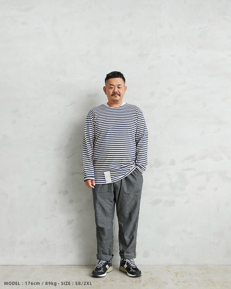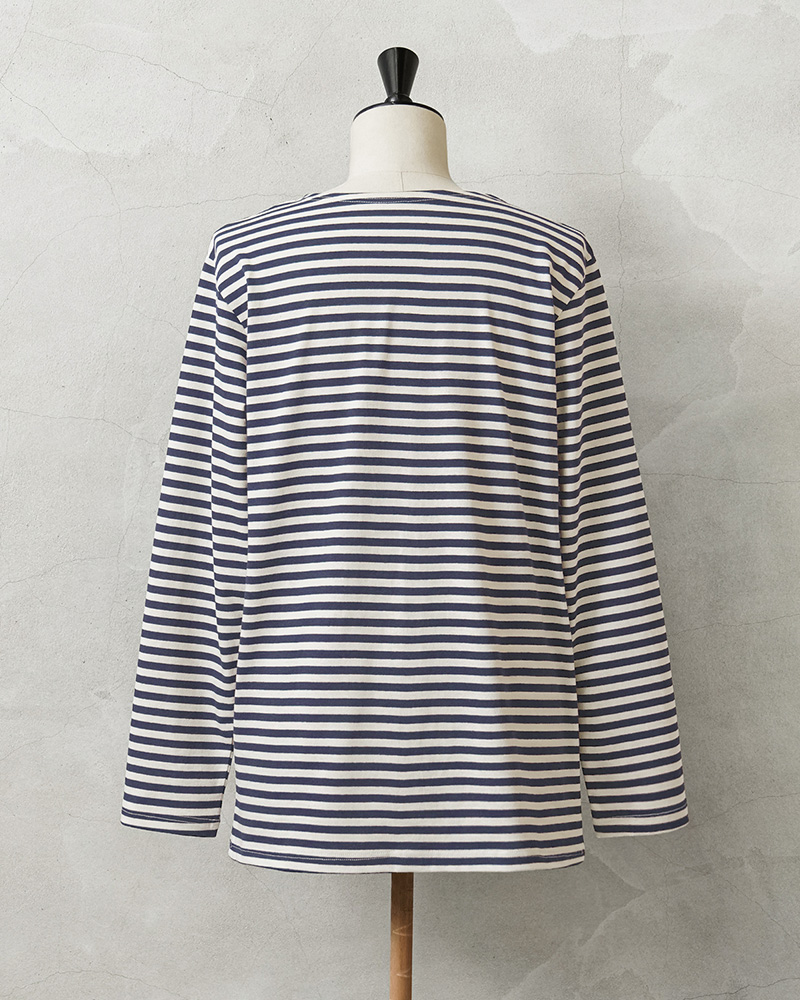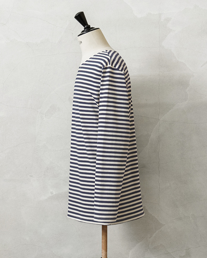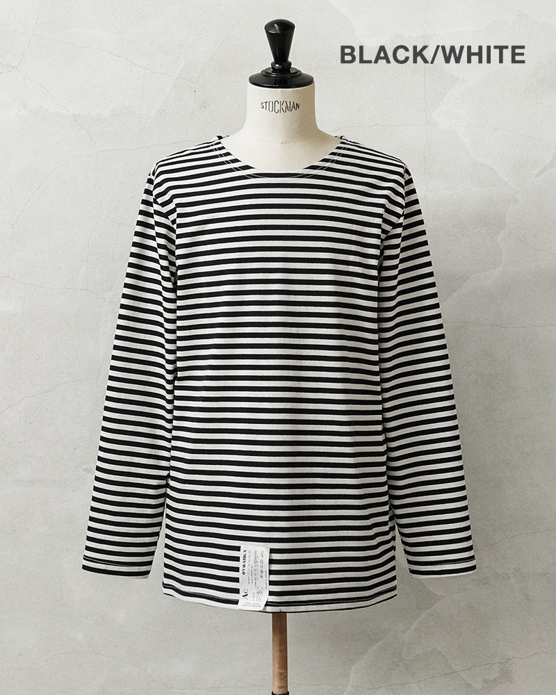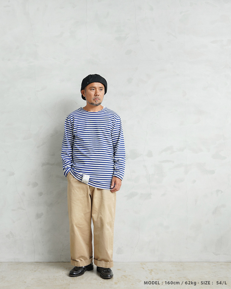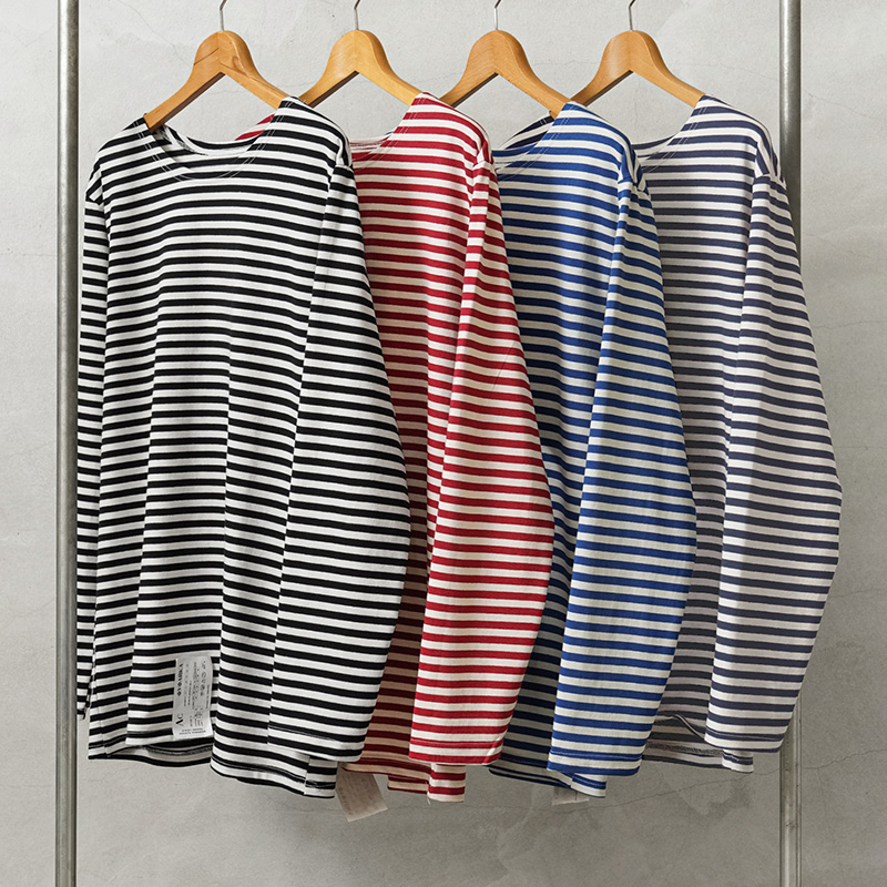 ロシア軍で使用される、レプリカではなく希少な実物新品のロングスリーブTEEが入荷しました。 ロシア語でテルニャシュカという軍人としてのプライドを象徴する伝統的なアンダーウェアで、ロシアの軍人のシンボルとも云われるアイテムです。異なるカラーのボーダーは特定の軍部門への所属を示しています。 ロシア海軍、ロシア海兵隊、ロシア空挺軍、ロシア内務省国内軍、特別任務民警支隊など、 数多くの部隊で愛用されています。素材は、薄手でしっかりとしたコットン生地を採用。とても肌触りが良いアイテムです。ボートネックなのでタンクトップやTシャツとのレイヤードでインナーを少し見せて着ると雰囲気良く着こなせます。 また、素材だけでなく、シルエットの良さも抜群で、適度にゆとりを持たせつつも、だらしなく見えないバランスで、ボディラインを綺麗に見せてくれます。