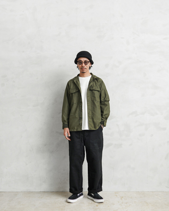 | 商品説明 | 実物 USED 米軍 ヘリクルーシャツ 横ポケットのご紹介です。 制式名称:SHIRT,FLYER’S,HOT WEATHER,FIRE RESISTANT 温暖な気候の地域にてヘリクルーおよび搭乗員が着用するポリアミド(耐熱ナイロン繊維)製のシャツです。襟裏には独特な形状のベルクロのチンストラップが付属しており、スタンドカラーでも着用できるデザインです。 比翼仕立ての前開きはジッパーにて開閉し、袖口はベルクロで絞り具合を調整可能です。袖部分にはペンホルダー付きでジッパー部分にはフラップが追加されたユーティリティポケット、両胸部分にはフラップ付きのポケットが配置されています。 1960年代後半に採用され、ベトナム戦争でも使用されたアイテムということで、暑い気候で着用できるように設計されており、快適性と通気性に優れた幅広い季節で活躍する素材感です。 シャツとしてはもちろん、シャツジャケットとしてもご着用いただけるアイテムです。薄手なので様々なシーズンでご使用いただけます。今では放出される機会が激減しているアイテムです! |