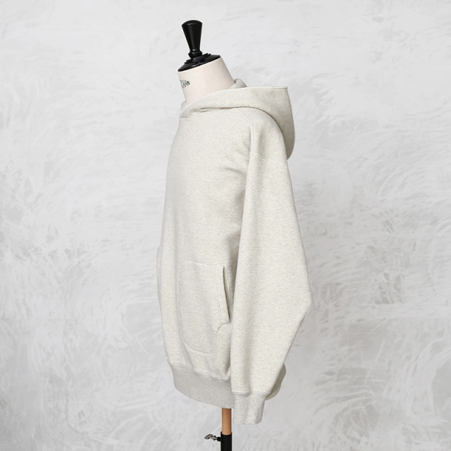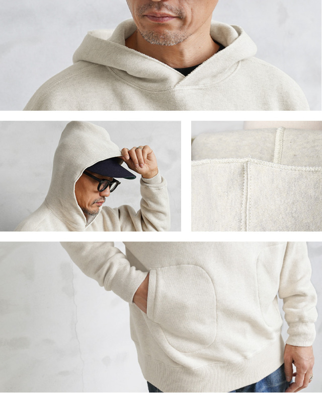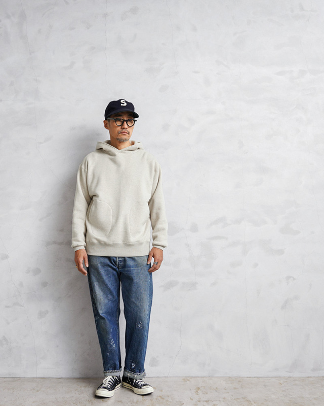 A.G.SPALDING&BROS シングル サイドライン スウェットパーカー 日本製のご紹介です。 品番:SPL-AGS-900001 和歌山県内のみでしか存在しない希少な吊り編み機によって編み立てられた裏毛生地を使用。テンションをかけず空気を含みながらゆっくりと編み、編み上がった生地も強制的に巻き取らないことで肌触りがふんわりした、まるで手編みのような仕上がりになります。現在の高速機には出せない柔らかな風合いは洗濯を繰り返しても型崩れを起こしにくく、身体にどんどん馴染んでいくので長く愛用していただけます。 1930年代にベンチウォーマーとして開発されたパーカーが原型になっているので防寒性に優れた一着。忠実再現であればダブルフェイス仕様となるところを、デザイン等のディテールはそのままにスッキリとしたシルエットにレイヤードスタイルにも最適なシングル仕立てにアレンジしました。 首元はデザイン性もあり風の侵入も防ぐクロスネック、裾や袖口は無縫製の筒リブを使用。胴体部分はサイドの縫い目がない丸胴仕上げなので縫い代が肌に当たらずストレスフリーで上質な着心地です。そしてアイコニックなボクシンググローブ型のポケットに、すっきりとしたシルエットと無骨な雰囲気を感じさせるロックフーディーなど、機能性だけでなくデザイン性も高い魅力の詰まったアイテムです。 100年前のディテールを再現したヴィンテージ感溢れるデザインと、希少価値の高い日本の技術を贅沢に使ったハイクオリティなアイテムです。 MADE IN JAPAN |