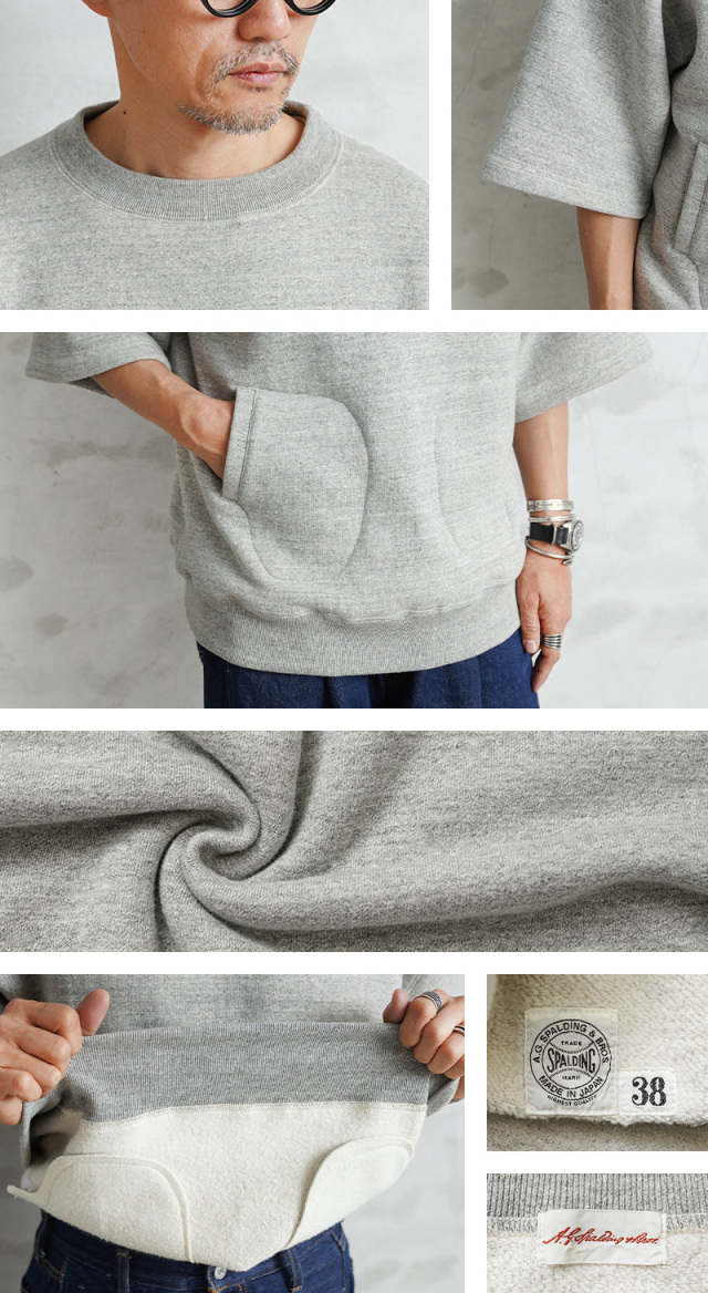 | 商品名 | A.G.SPALDING&BROS エージースポルディング&ブロス SPL-AGS-951002 ハーフスリーブ スウェットシャツ 日本製 |