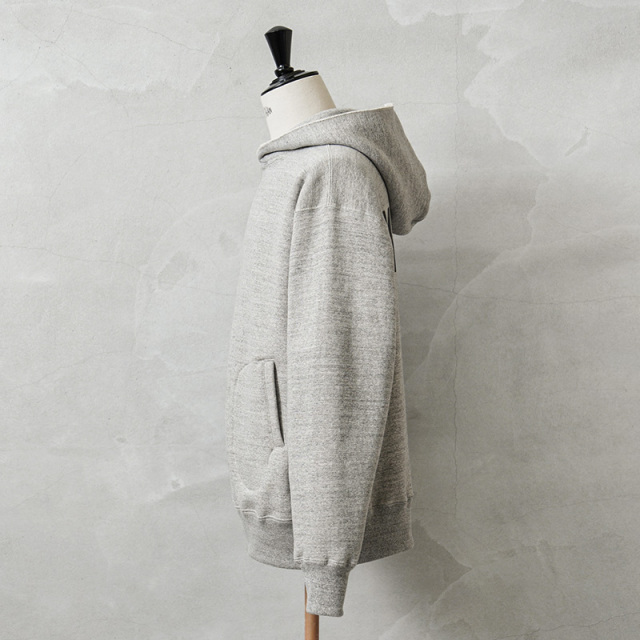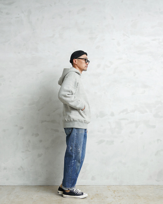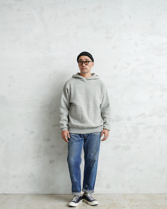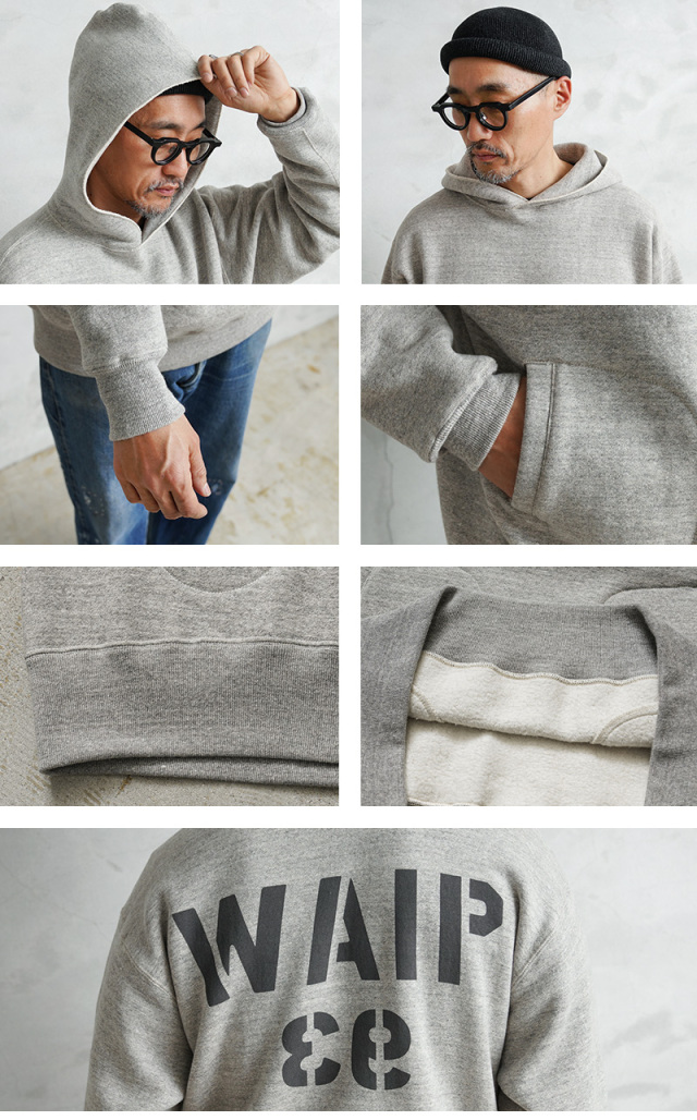 A.G.SPALDING&BROS×WAIPER シングル サイドライン コラボスウェットパーカー 日本製のご紹介です。 品番:SPL-WAP-251004 極上の着心地とヴィンテージの風格を纏う、A.G.SPALDING&BROS×WAIPERのコラボスウェットパーカーが登場。 日本が誇る希少な「吊り編み生地」を採用 和歌山県にしか現存しない貴重な吊り編み機を使い、空気を含ませながらゆっくりと編み立てた裏毛生地を使用。 強制的に巻き取らないことで、まるで手編みのようなふんわりとした極上の肌触りに仕上がりました。 高速編み機では再現できない柔らかさと耐久性を併せ持ち、洗濯を繰り返しても型崩れしにくく、着るほどに身体に馴染んでいく一生モノの一着です。 1930年代のオリジナルを現代的にアップデート このパーカーは1930年代にベンチウォーマー用として開発されたヴィンテージパーカーが原型。 通常ならダブルフェイス仕様のところを、スッキリとしたシルエットに仕上げたシングル仕様にアレンジ。 レイヤードスタイルにも最適な万能デザインです。 ・防寒性とデザイン性を兼ね備えたクロスネック 首元は風の侵入を防ぐだけでなく、スタイリッシュな印象をプラス。 ・縫い目のストレスゼロの「丸胴仕上げ」 サイドの縫い目をなくし、着心地をより快適に。 ・「筒リブ」 裾や袖口は無縫製の筒リブを使用し、クラシックな雰囲気を演出。 ・アイコニックなボクシンググローブ型ポケット デザインのアクセントとしても機能する特徴的なディテール。 今回のコラボでは、A.G.SPALDING&BROSの貴重なアーカイブで使われていたプリントのフォント「SRJC 39」をベースに、WAIPERの文字を特別に再構築。数字の「39」を反転させることで「ER」に見える独特のデザインを採用し、ヴィンテージの雰囲気を残しながらモダンにアップデートしました。 これぞ、日本の技術が生み出す「一生モノ」の逸品 100年前のディテールを忠実に再現しつつ、現代的なシルエットと快適な着心地を追求。日本製ならではの高品質な作り込みと、ヴィンテージ感溢れるデザインが融合した、唯一無二のスウェットパーカーです。 MADE IN JAPAN |