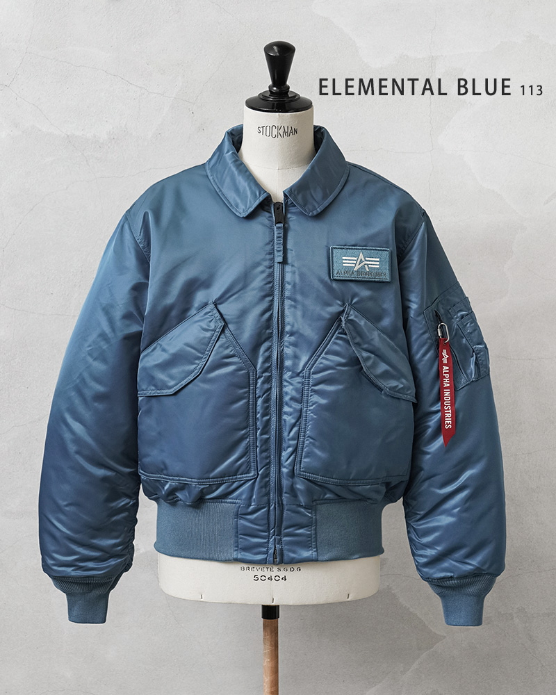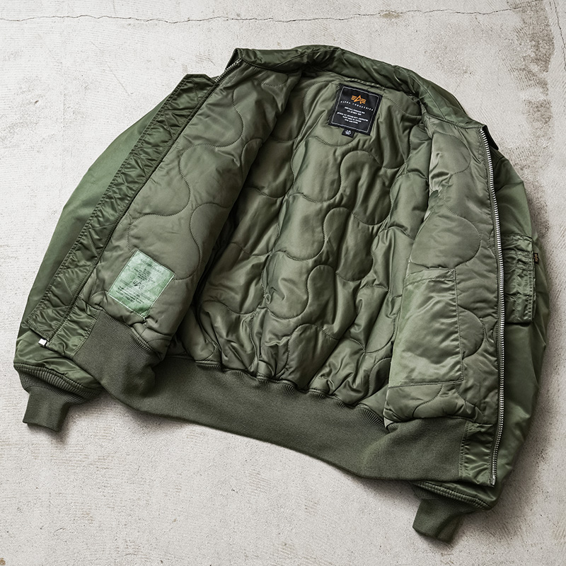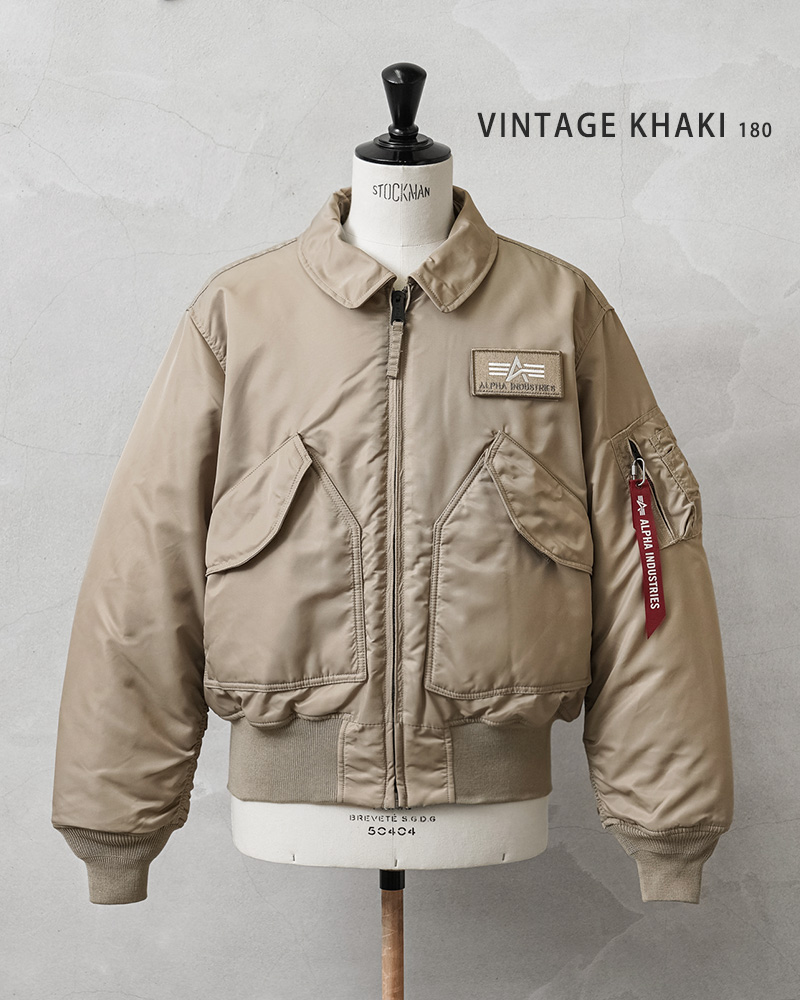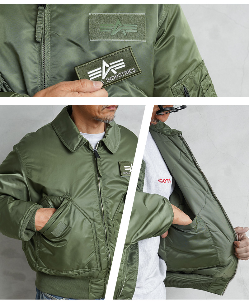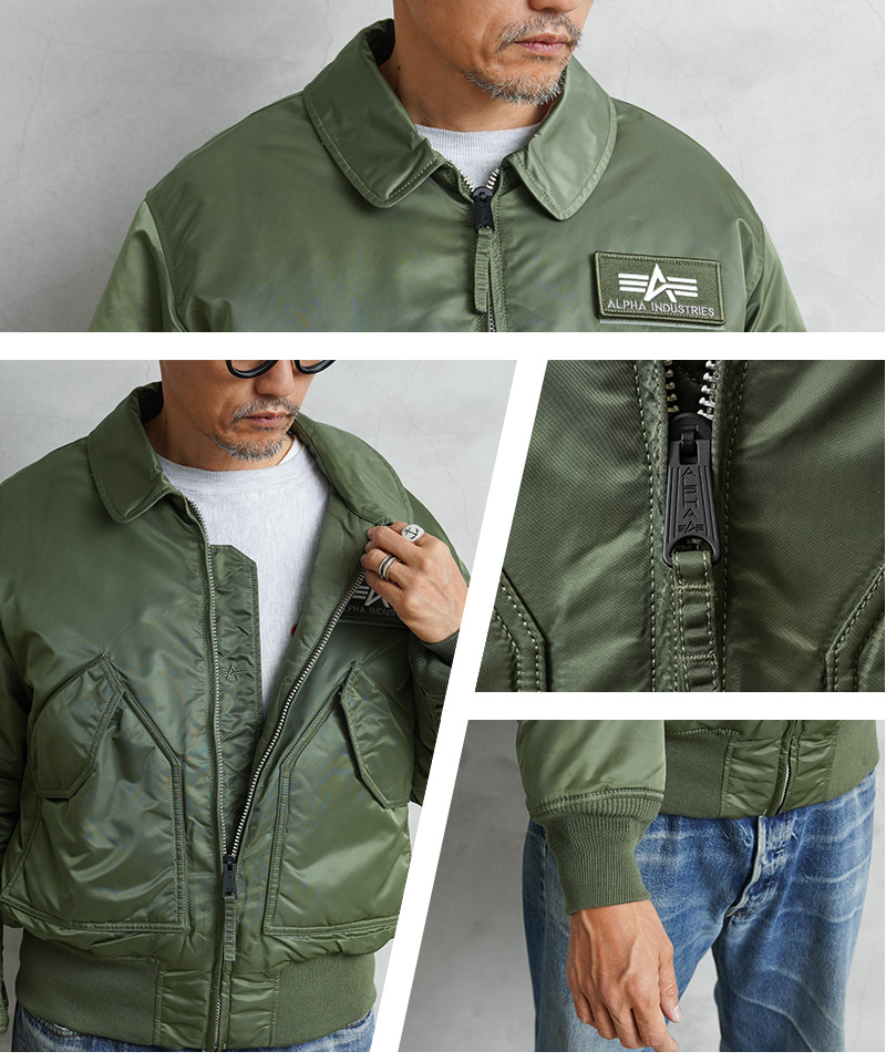 MA-1の後継モデルとして、現在までアメリカ陸・海・空の三軍および海兵隊において正式採用された現行型フライトジャケット“CWU 45/P”が、伝統を継承する本国規格の「ALPHA INDUSTRIES」より登場しました。CWU 45/Pは、MA-1と同様にインターミディエイトゾーン(-10~10℃)用としてアメリカ軍に正式採用されており、防寒性抜群。リブ仕立ての襟と袖口、斜めにカットされたフロントポケット、左上腕部のジッパー付きユーティリティポケット、気分やコーデの雰囲気に合わせて着脱可能なレッドタグが特徴的です。ミリタリーアイテムとしてのクラシックな雰囲気や機能性はそのままに、幅広いアイテムに合うよう仕上げられています。見た目だけでなく防寒性と機能性に富んだジャケットは、定番アウターとして備えて置きたい一着です。