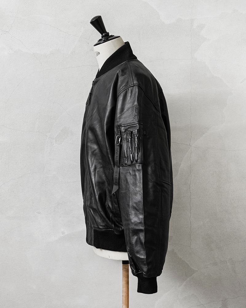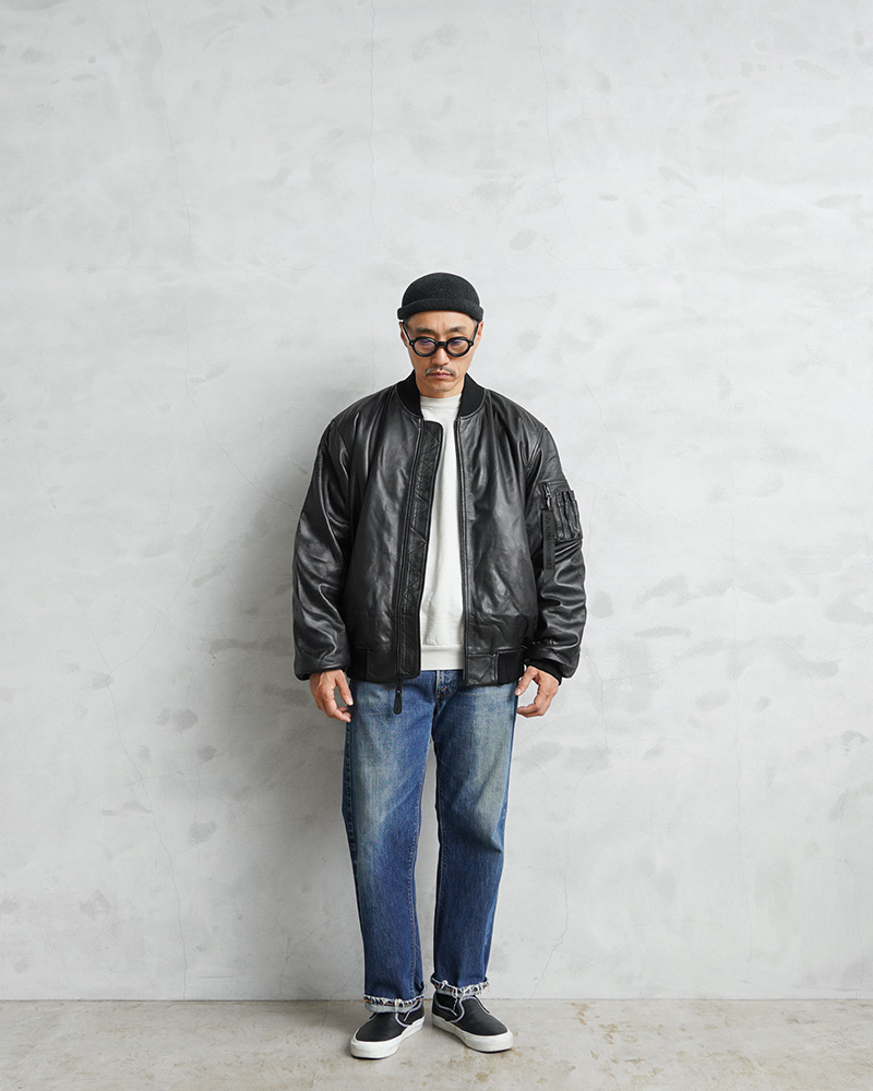 ナッパレザーで新たに生まれ変わったMA-1フライトジャケットが、伝統を継承する本国規格の「ALPHA HERITAGE COLLECTION」より登場しました。MA-1はインターミディエイトゾーン(-10~10℃)用として1950年代半ばにアメリカ空軍や海軍のパイロットに採用されて以来、7度の仕様変更を行いつつ、1980年代まで使用され続けた傑作中の傑作。リブ仕立ての襟と袖口、斜めにカットされたハンドウォーマーポケット、左上腕部のユーティリティポケットとペンホルダーなど伝統的なMA-1のすべての特徴を保持したまま、レイヤリングがしやすいオーバーサイズフィットに仕立てられています。非常に柔らかくしなやかで、手触りが良く、革本来の自然な風合いが楽しめる高級本革「GENUINE NAPPA LEATHER(ジェニュインナッパレザー)」を採用。