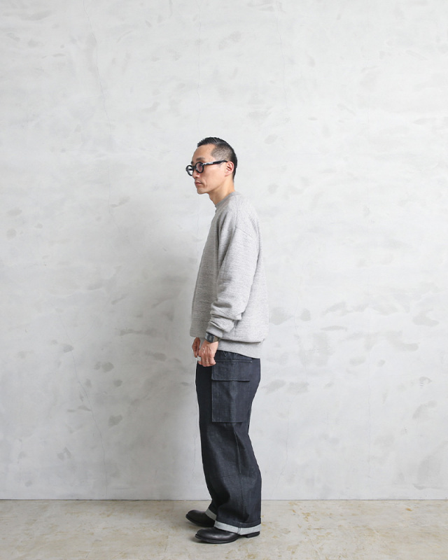 フランス軍で第二次世界大戦後に初めて開発、採用されたM-47フィールドカーゴパンツをALMW BY WAIPER アーミー バイ ワイパーの視点で再現されたアイテムです。生地はアメリカ産スーピマコットンの超長綿を使用したワイパーオリジナルデニム。通常であれば超長綿はライトオンスで綺麗な目面で織るところを、あえてしっかりとした14ozでデニムの聖地岡山県にて織りました。リジッドながらも非常に柔らかい履き心地を体験できますので是非、リジッドの状態から育ててもらいたいデニムです。ニューバランスやコンバースなどの定番スニーカーから、ドレスシューズまで幅広いシーンに合わせていただけるアイテムです。MADE IN JAPAN