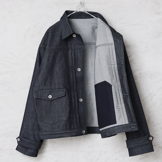 ALMW by WAIPER アーミー バイ ワイパー FRENCH ARMY M-47 Type2 デニムジャケットのご紹介です。 品番:WILA-M47DJK ALMW BY WAIPERの視点でM-47フィールドジャケットやType2デニムジャケットを再現したアイテムです。 生地はアメリカ産スーピマコットンの超長綿を使用したワイパーオリジナルデニム。通常であれば超長綿はライトオンスで綺麗な目面で織るところを、あえてしっかりとした14ozでデニムの聖地岡山県にて織りました。表面は光沢がありながら着込む程に美しい経年変化を楽しめる、スーピマコットンならではの柔らかくしなやか着心地になっています。 M-47ジャケットからは首元のチンストラップや袖ストラップを取り入れ、通常のデニムジャケットに見られないデザイン性を実現。Type2でみられるダブルフラップポケットやセンタープリーツを取り入れ、ポケットの位置は通常より下げている為、物の出し入れしやすい仕様に変更。そしてデニムジャケットにあまり見られない内ポケットを配置しており、スマホやキーホルダー等も小物の収納にも便利です。バックはTバック仕様を取り入れながらもウエストにボタンアジャスターですっきりしたデザインになっています。 ボックスシルエットになっておりますのでヴィンテージはもちろん現代のスウェット等の相性もよく、リジッドながらも非常に柔らかい着心地を体験できます。是非リジッドの状態から育ててもらいたいデニムです。 MADE IN JAPAN |