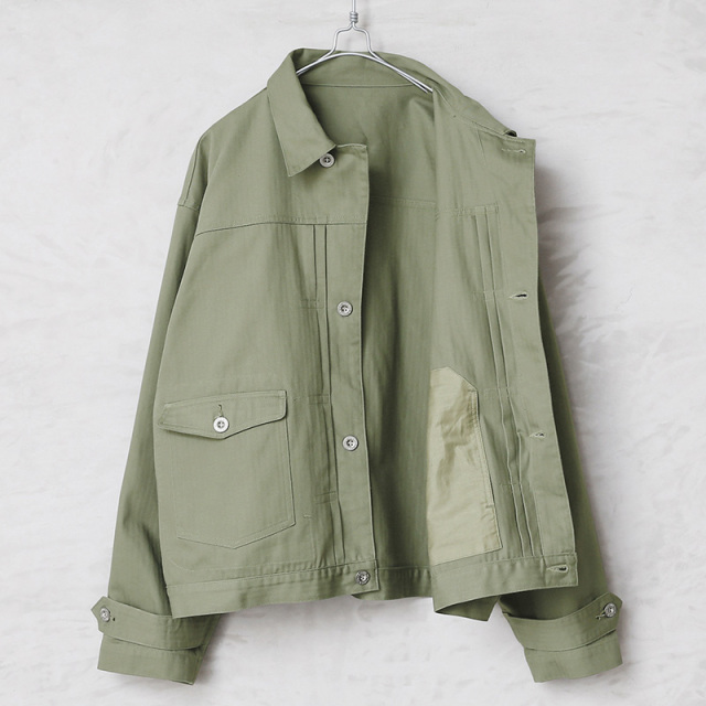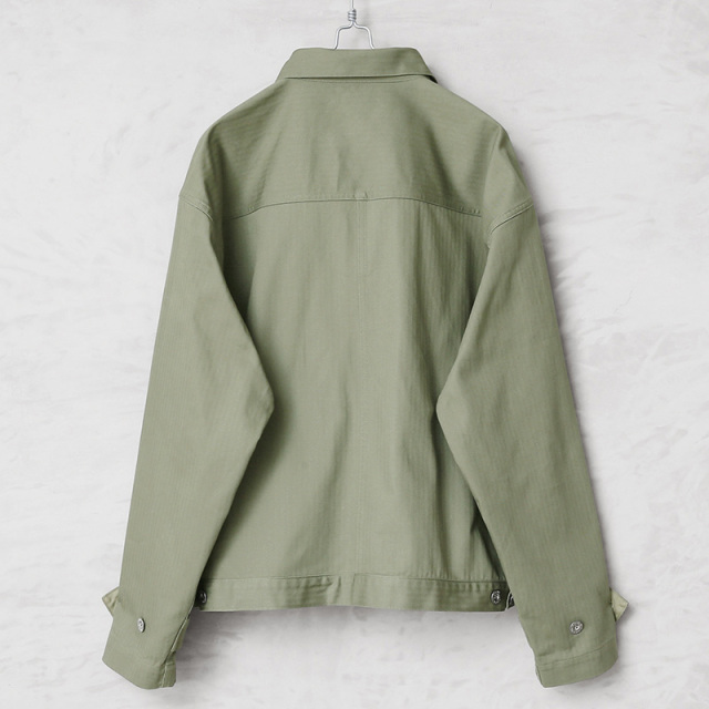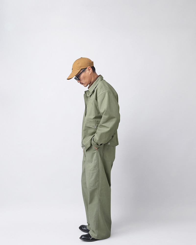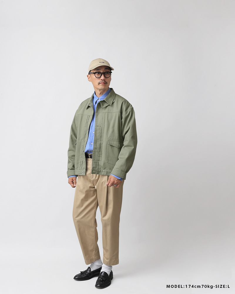 ALMW by WAIPER アーミー バイ ワイパー FRENCH ARMY M-47 Type2 ヘリンボーンジャケットのご紹介です。 品番:WILA-M47HJK ALMW BY WAIPERの視点でM-47フィールドジャケットやType2デニムジャケットを再現したアイテムです。 生地は米軍の40sヘリンボーンツイル生地の組成を分析し忠実に再現した素材を使用しています。綾織の向きが交互に変わるヘリンボーン生地は耐久性にも優れ、独特な雰囲気と経年変化によるアタリが楽しめます。 M-47ジャケットからは首元のチンストラップや袖ストラップを取り入れ、通常のジャケットに見られないデザイン性を実現。Type2でみられるダブルフラップポケットやセンタープリーツを取り入れ、ポケットの位置は通常より下げている為、物の出し入れしやすい仕様に変更。そして内ポケットを配置しており、スマホやキーホルダー等も小物の収納にも便利ですバックはTバック仕様を取り入れながらもウエストにボタンアジャスターですっきりしたデザインになっています。 ボックスシルエットになっているのでヴィンテージはもちろん現代のスウェット等の相性もよく、 M-47 Type2デニムジャケットと異なりライトオンスのヘリンボーン生地を使用することによって最初からこなれ感を演出できます。 MADE IN JAPAN |
