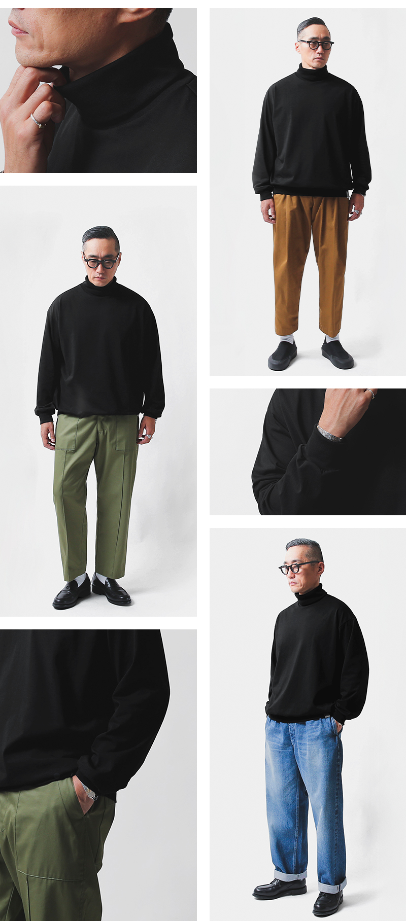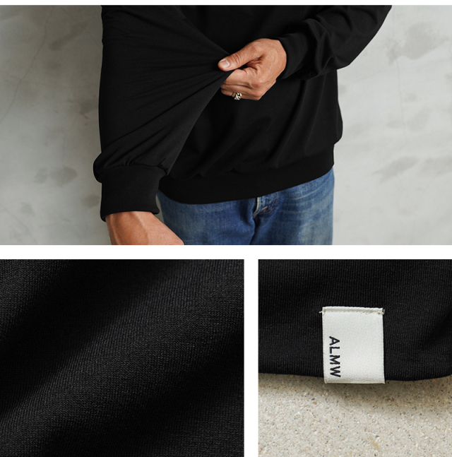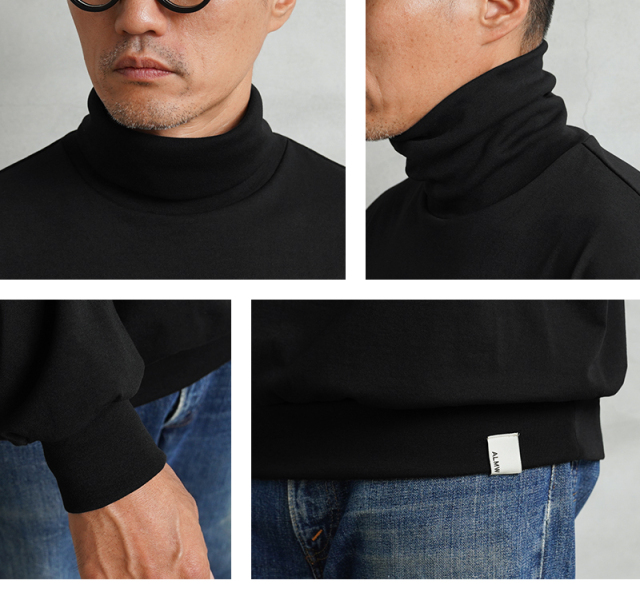 ALMW by WAIPERより着心地が良く汎用性の高いタートルネックが登場しました。 ニットのタートルネックとは異なり、リサイクル生地を使用しており肌当たりもよく、使い勝手が良いのが特徴です。 環境に配慮したリサイクルポリエステル100%の糸は、形態安定・吸水速乾・抗ピル・UVカット、そしてポリエステルでありながらコットンのような風合いです。ファッションのみならずあらゆるシーンで対応できる機能を備えております。 袖や裾にはリブを取り入れ、シンプルで理想的なシルエット実現。洗っても型崩れしにくく、インでもアウトでも対応でき、タフな風合いながらもシンプルでクリーンな表情を見せてくれるので、どんなボトムスやシーンにもマッチします。