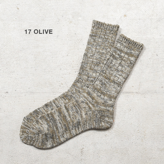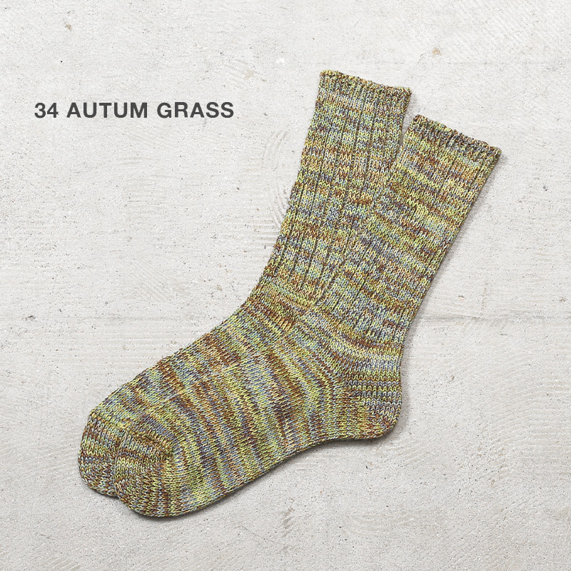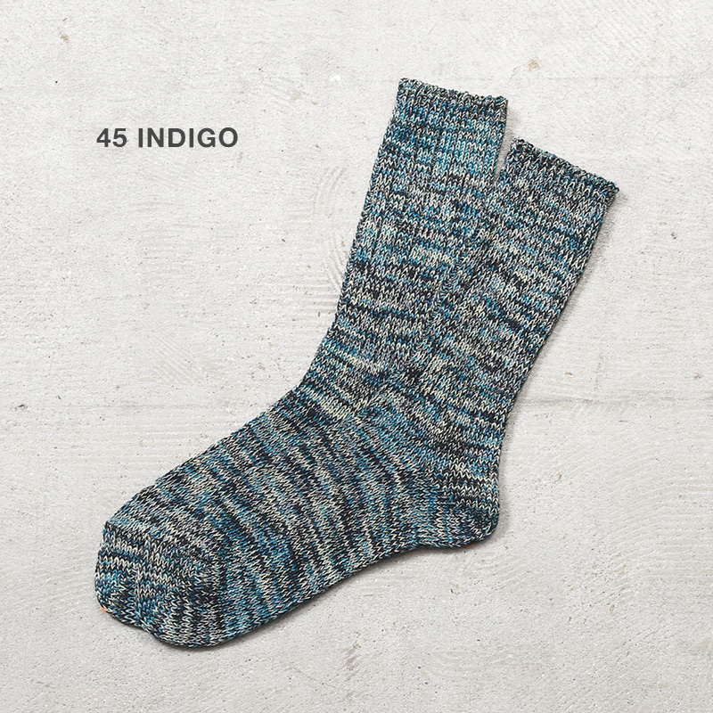 AnonymousIsm アノニマスイズムより、色の異なる糸を絶妙にブレンドしたミックスヤーンを使用した、クルーソックスが登場です。素材には、上質なコットンをベースに、ポリエステルを絶妙なバランスでブレンド。通気性・吸湿性に優れており、蒸れにくくサラッとした履き心地をキープします。日本国内の職人による丁寧な編み立てで、長時間履いても疲れにくく快適なフィット感を実現。履き口のリブはしっかりとフィットしながらも締め付けすぎず、ズレにくい仕様です。ブーツやスニーカー、サンダルと合わせても相性抜群です。