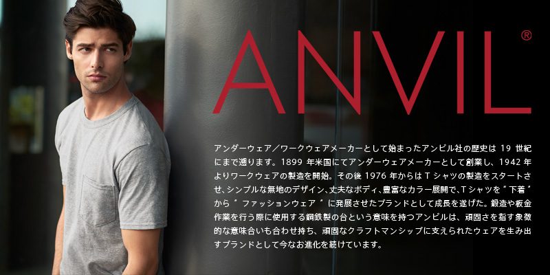 | ブランド | ![]() 1899年米国にてアンダーウェアメーカーとして創業し、1942 年よりワークウェアの製造を開始。 その後1976年からはTシャツの製造をスタートさせ、シンプルな無地のデザイン、丈夫なボディ、豊富なカラー展開で、Tシャツを”下着”から”ファッションウェア”に発展させたブランドとして成長を遂げた。 鍛造や板金作業を行う際に使用する鋼鉄製の台という意味を持つアンビルは、頑固さを指す象徴的な意味合いも合わせ持ち、頑固なクラフトマンシップに支えられたウェアを生み出すブランドとして今なお進化を続けています。 その他のANVIL アンビルはこちら |