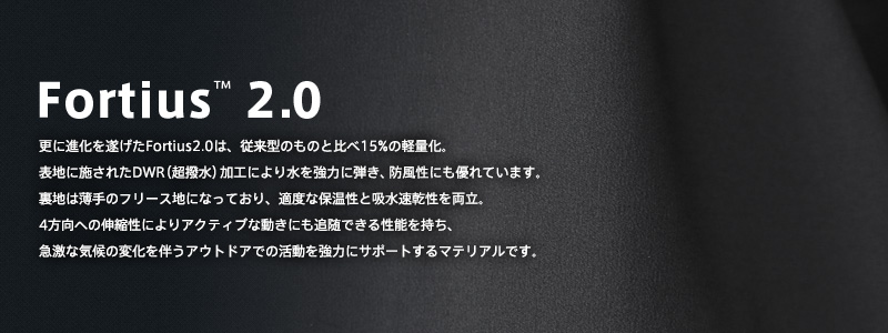 | 素材 | 表地:Fortius 2.0(ナイロン84%、ポリウレタン16%) 裏地:ポリエステル100% |