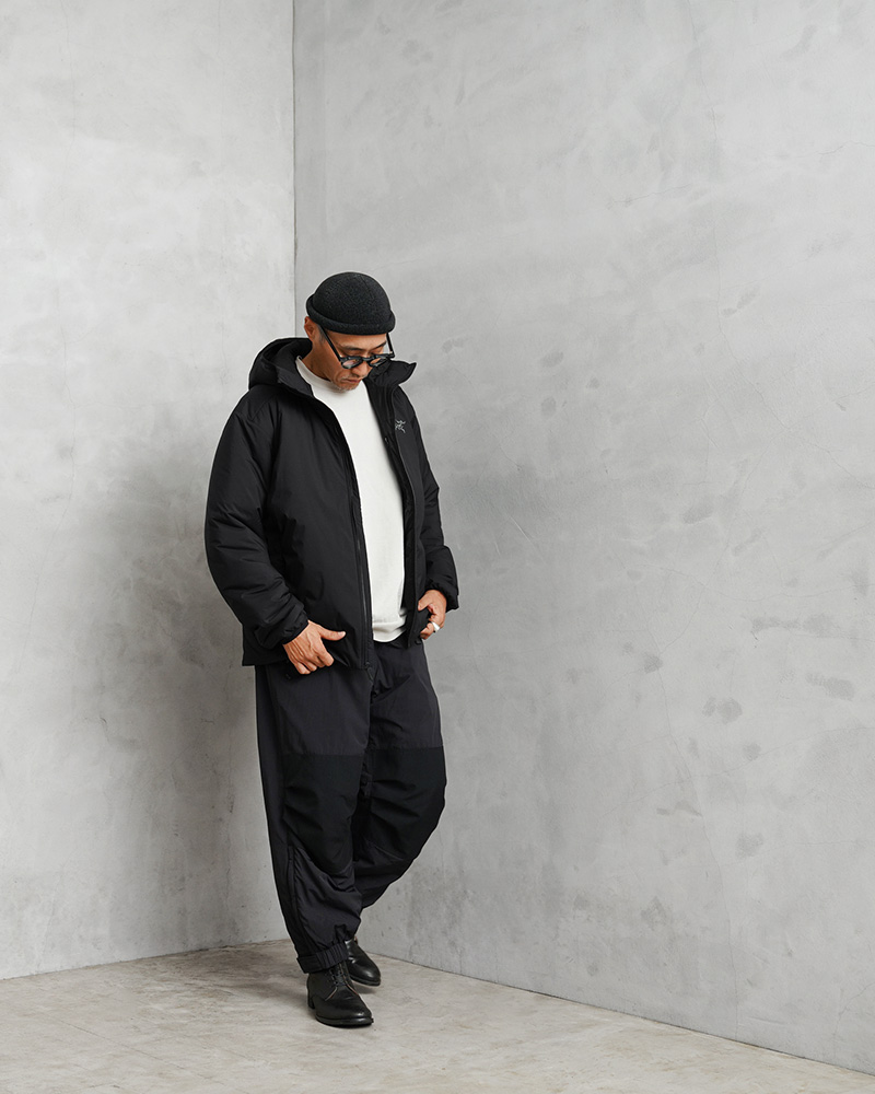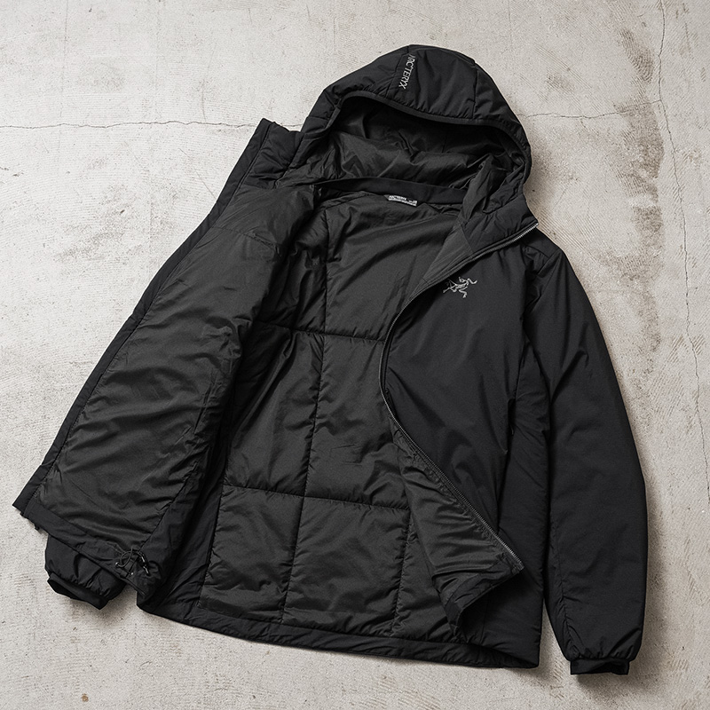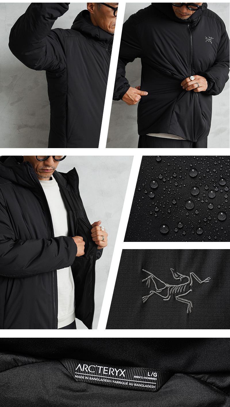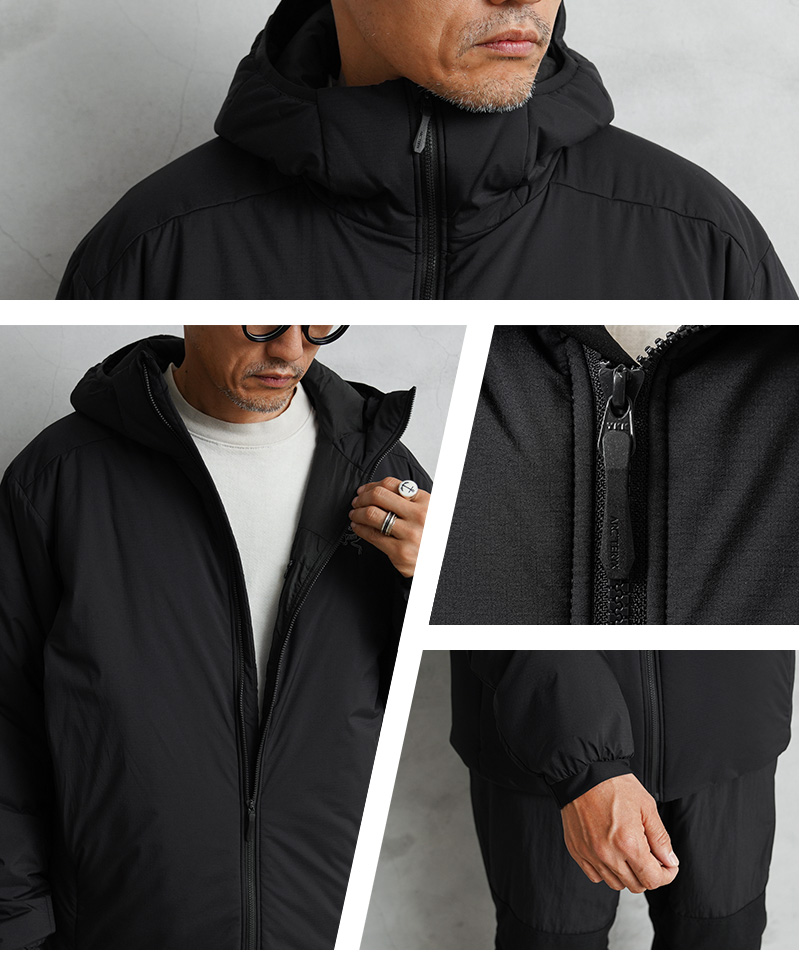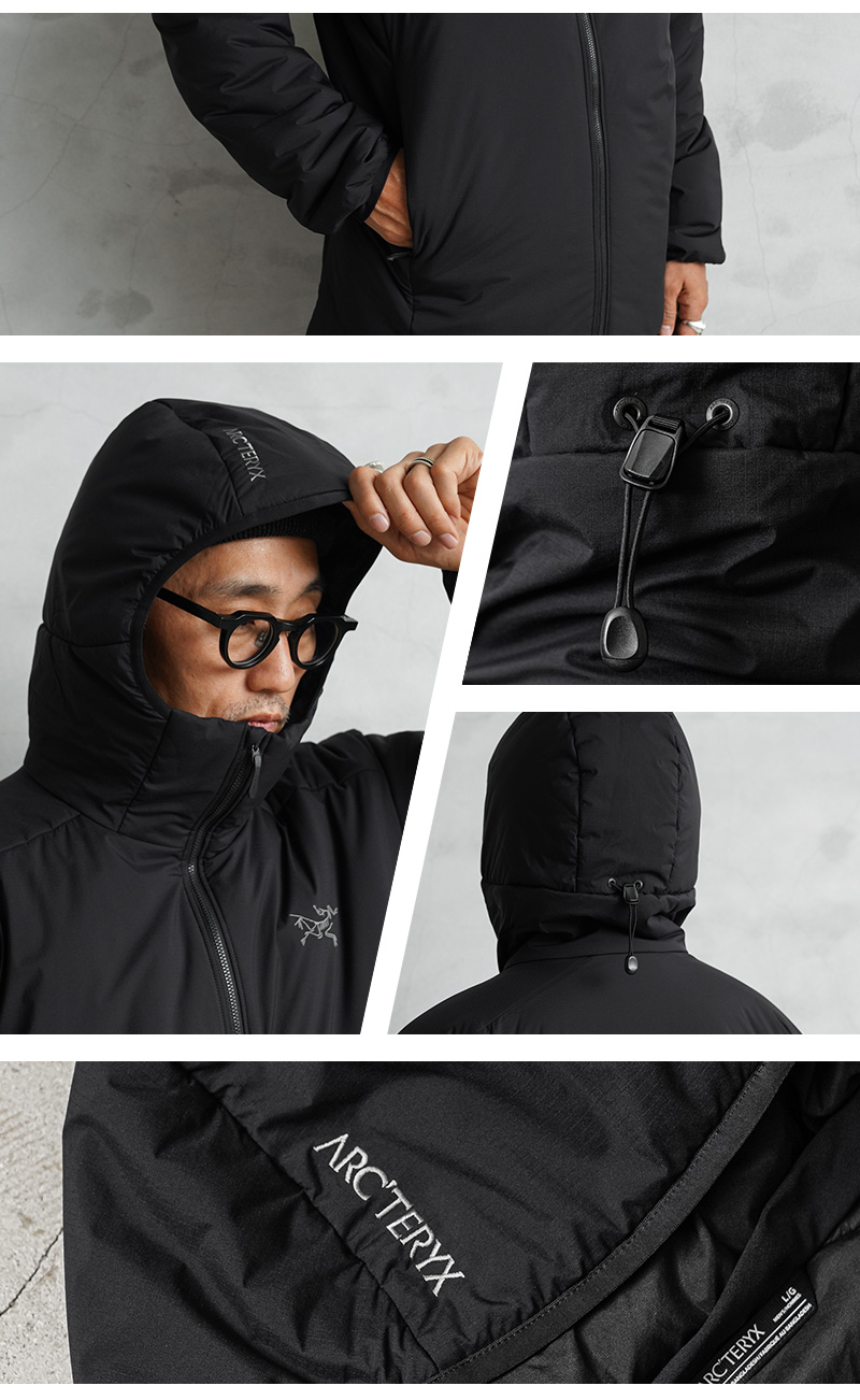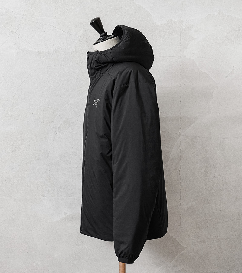 寒冷地のミッドレイヤーとして、または休息中や車での移動中に一枚でも着用可能なARC’TERYXの定番モデル「アトムフーディ」。幅広いコンディションや負荷レベルを想定して設計された最も汎用性の高い高断熱ジャケットです。撥水効果のあるTyono30表面素材は通気性と耐久性を備え、男性の体格に合わせた改良型サーモマッピングのサイドパネルパターンが通気性を高め、オーバーヒートを軽減。 自由な動きが可能な立体構造、ヘルメット対応のインシュレーティッド StormHoodで、首まわりも保温でき、快適性と防寒性を兼ね備えた一着になっています。トレッキングなどのアウトドアには勿論、デイリー使いのアウターとして非常に重宝する万能アウターです。
