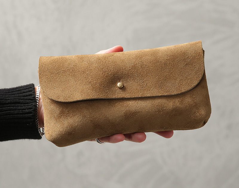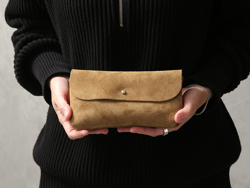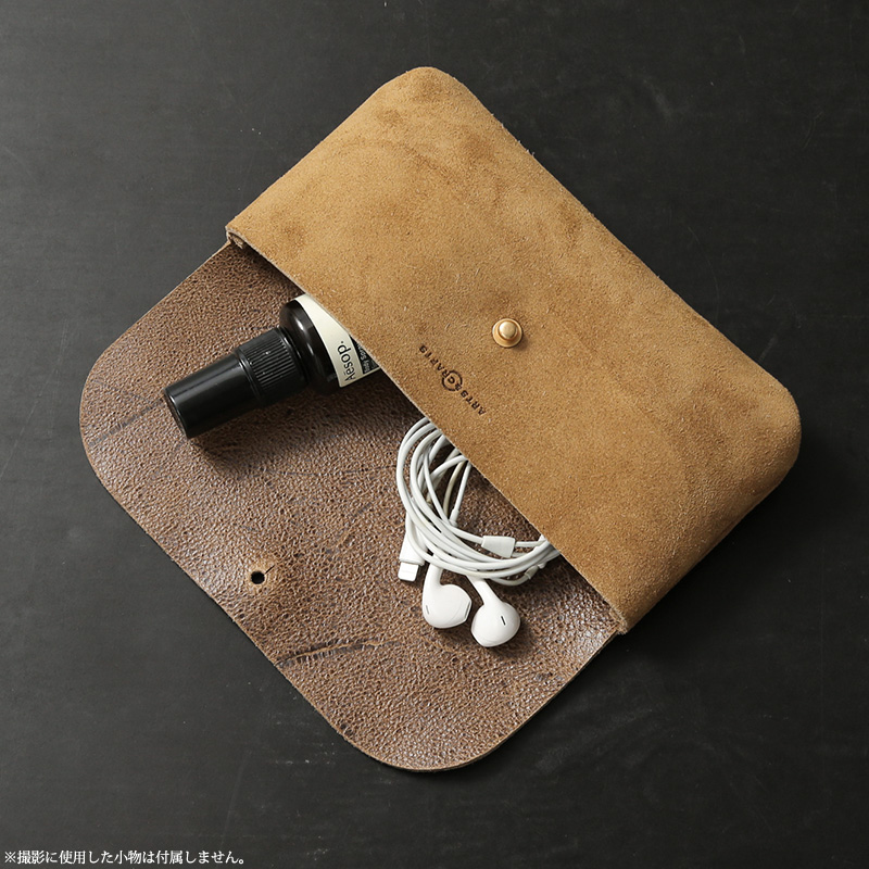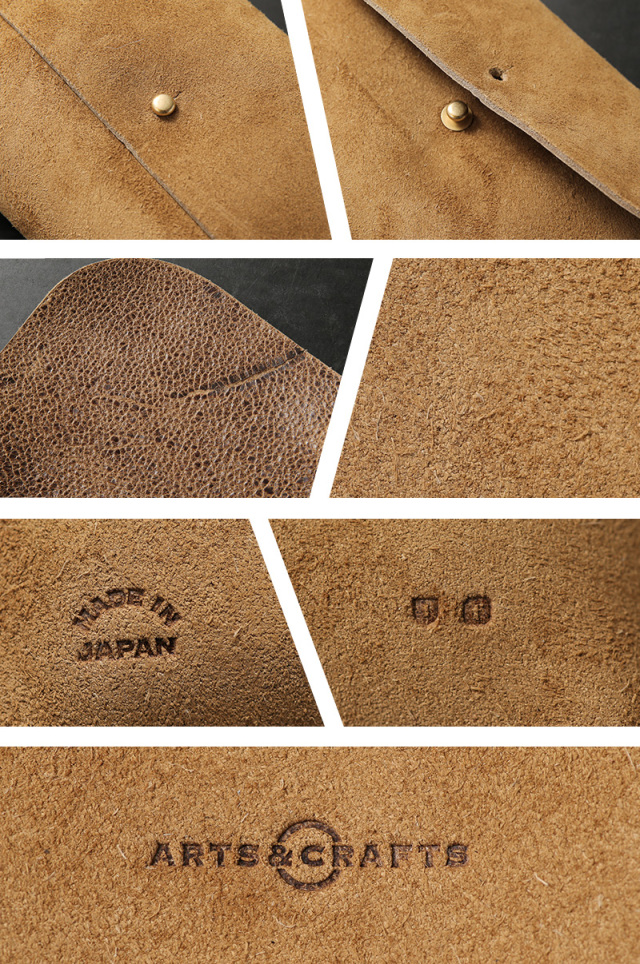 ARTS&CRAFTSより、ダブルフェイスの『KUDU(クードゥー)』レザーを使用した、手のひらサイズのフラップポーチが登場。本体素材は、1904年創業のイギリスの老舗タンナー、チャールズ・F・ステッド社が生産する両面使いができる吟付きスエードレザーで、アフリカに広く生息するウシ科の動物『KUDU(クードゥー)』の革を使用。吟面は非常に野性味溢れる表情で、野生での生活でついた傷が非常にたくさん刻まれているのが最大の特徴。バッグの中でも邪魔にならないサイズ感。フラップは、革の切れ目に金具の突起を差し込んでギボシで留めることができます。 男女ともに汎用性抜群。