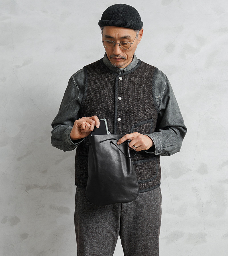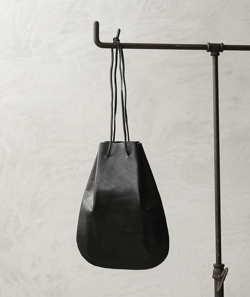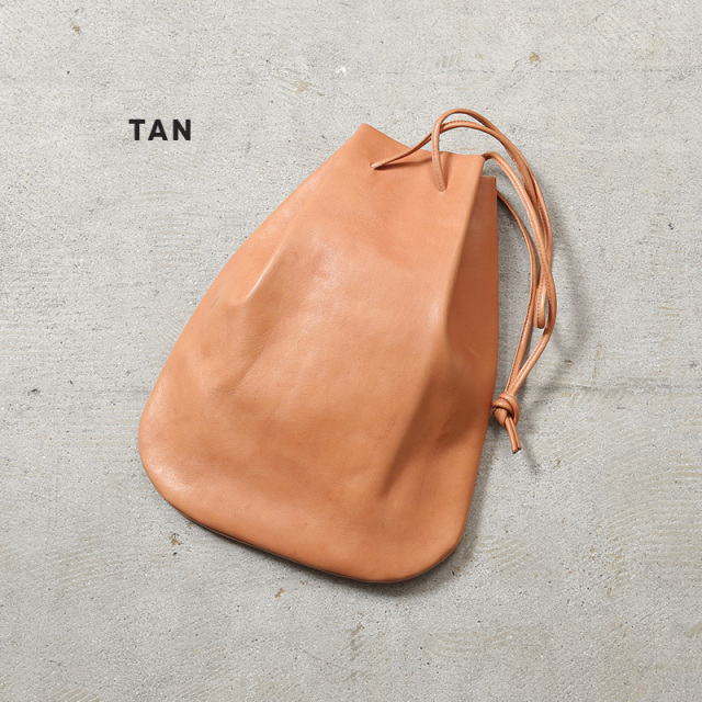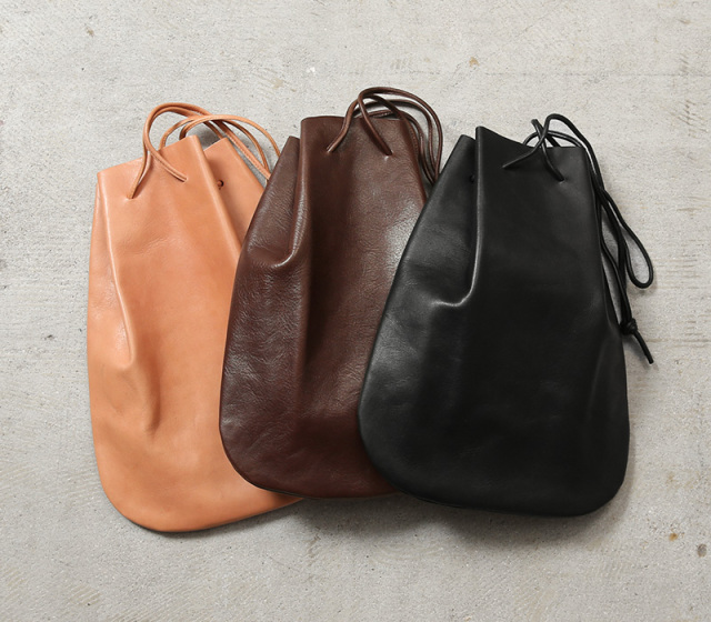 ARTS&CRAFTSより、使うほどに愛着が湧く、3WAYで使える馬革の水滴型のポーチバッグが登場。本体にはコードバンで有名な姫路の新喜皮革の馬革を使用。馬のお尻の革であるコードバン革をとった前部分(ホースフロントレザー)を材料に、ベジタブルタンニンで鞣し、表面は染料仕上げを施し軽くアイロンを当て、程よい艶と透明感を持たせています。馬革は革の中でも最も軽い革の一つで、同じサイズの牛革より3割ほど軽いと言われています。軽量かつ、繊維が緻密で裁断面もシャープに上がり、しなやかさと通気性の良さも併せ持つ馬革本来の特徴を活かすため、オイル等を使用していません。革の丸紐は、本体と同じ革を0.3~0.5mm厚に漉き、アクリル糸を芯として、革をチューブ状にしてミシンで縫合。