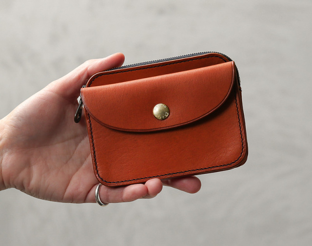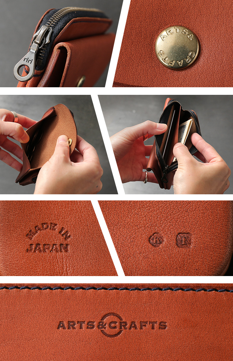 ARTS&CRAFTSより、育てていく楽しみがあるヴァケッタレザーを使用した、2層構造のシンプルで使いやすいファスナー財布が登場。本体にはトスカーナ地方にあるTEMPESTI(テンペスティ)社のELBAMATTと呼ばれるヴァケッタレザーを使用。ヴァケッタレザーは、1200年程前の9世紀初頭からイタリア/トスカーナ地方に伝わる伝統的な皮革製造法で作られた革で、ショルダーレザーの原皮をチェストナット(栗)やミモザから抽出されるベジタブルタンニンでゆっくりと時間をかけて鞣し、獣油を加えてナチュラルスムースに仕上げられます。前側にフラップ式の小銭入れ、後側にはスイスのriri社製ファスナーのポケットが装備。中には仕切りがあり、お札とカードを分けて入れることができます。