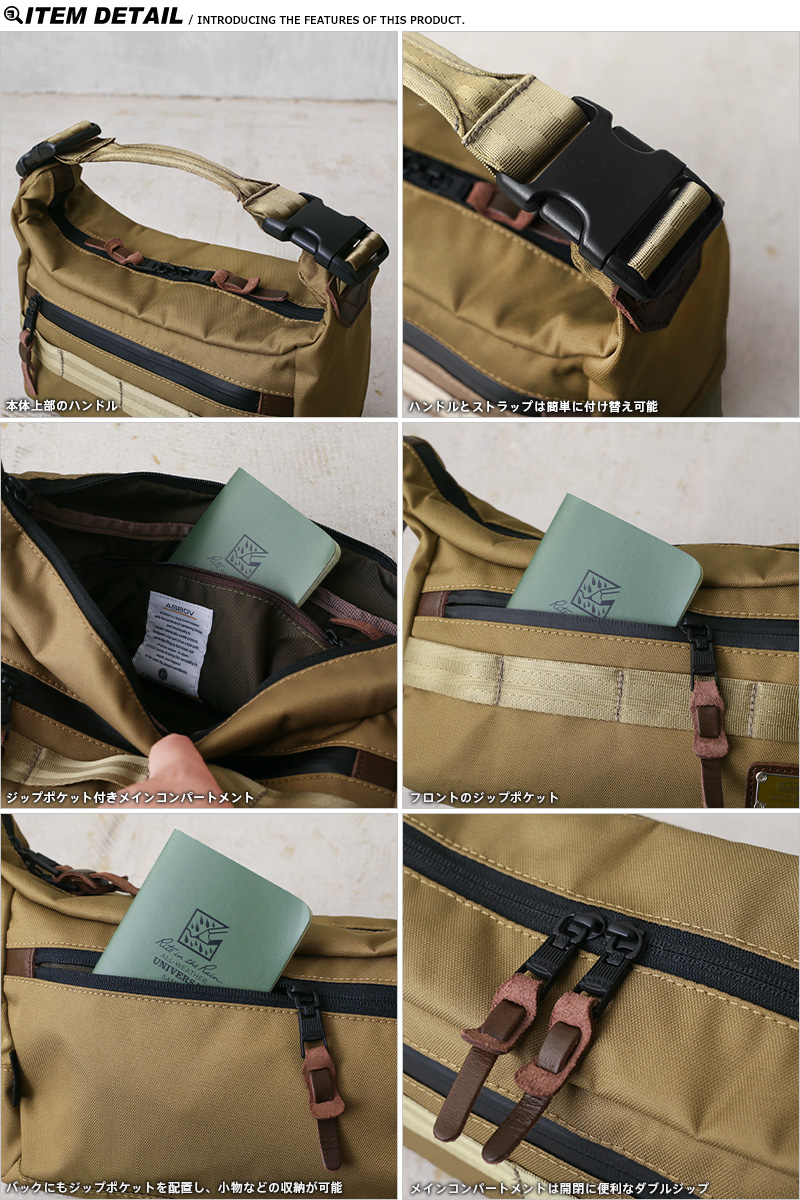 AS2OV アッソブ CORDURA DOBBY 305D 2WAY BAG Sサイズ ショルダーバッグ / ハンドバッグのご紹介です。 品名:CORDURA DOBBY 305D 2WAY BAG S 品番:061412 AS2OVからタフさと機能性を取り揃えた2WAYバッグが登場しました。 こちらのバッグはタテ・ヨコに305dの特殊ポリエステル糸を使用したCORDURA® 305d fabricを使用。摩擦、引き裂き、すり切れ等に対し強い素材を使用しているためコンパクトながらタフなボディとなっております。生地はドビー織りを採用しておりオックス、ツイル織りでは表現出来ない特徴的な生地目です。生地の裏面には通常よりも2倍量のPU加工を施すことにより生地に程よいボリューム感を持たせています。 収納は3つあり、メインコンパートメントは500mlペットボトルが収納できて街使いにぴったりなサイズです。メインコンパートメント内には小物の収納に便利なジップポケットを搭載。フロントとバックにはそれぞれジップポケットが付いており収納性抜群です。 ショルダーベルトは細身のナイロンベルトを採用。コーティング加工によって衣類との摩擦を軽減します。また、長さの違う2本のベルトが付属するためハンドバッグ、ショルダーバッグの2WAYでの使用が可能です。 メタル製ブランドタグ、レザーの引手を付けたジッパーなど細部のディテールまでこだわり抜かれた一品となっております。 |