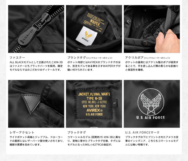 | 商品名 | AVIREX アビレックス WAIPER別注 N-3Bフライトジャケット LIMITED VINTAGE ブラックリアルファー |
