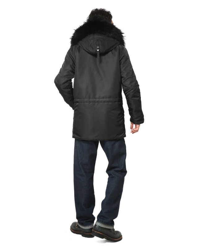 | 素材 | 表地:ナイロン100% 裏地:ポリエステル100% 中綿:毛60% ポリエステル40% リブ部分:アクリル62%、毛27%、ポリエステル9%、ポリウレタン2% 毛皮部分:ラクーンファー フード裏:アクリル50%、ポリエステル50% |