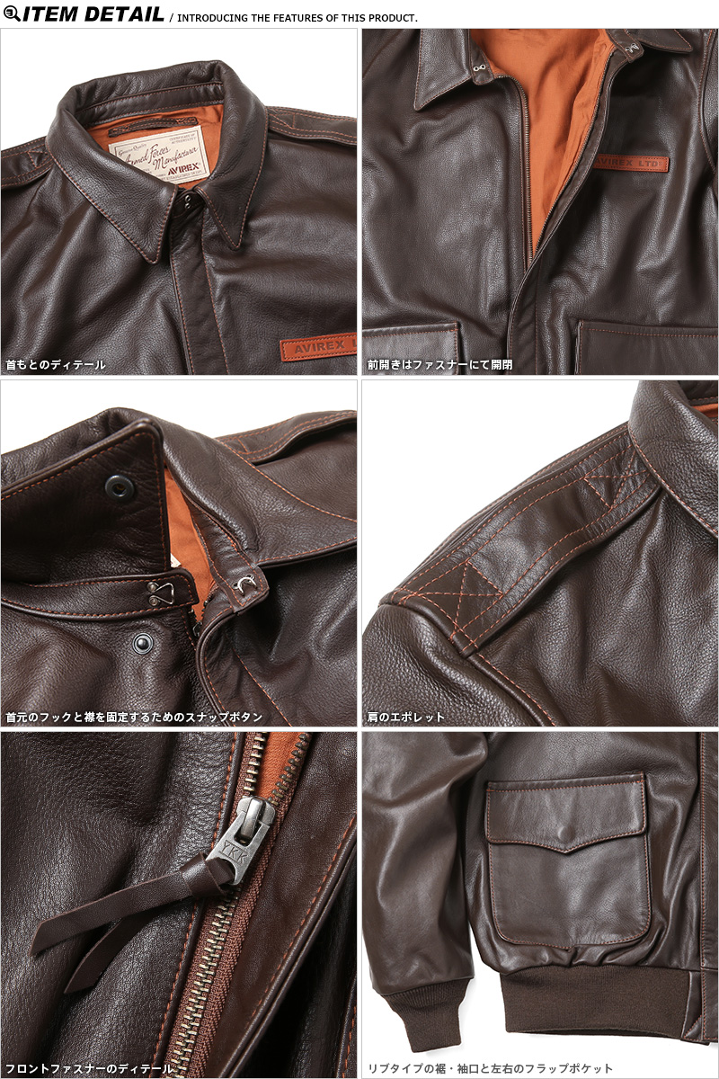 | 商品名 | AVIREX アビレックス 6181061 A-2 レザーフライトジャケット PLAIN |