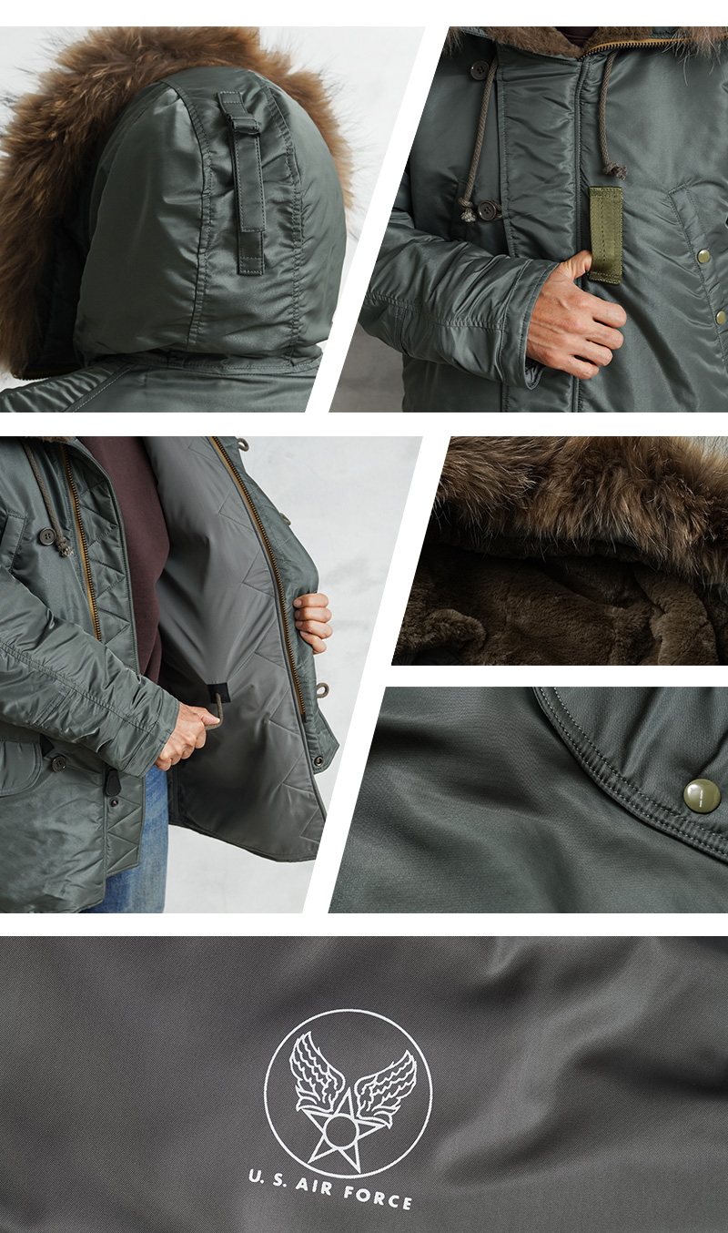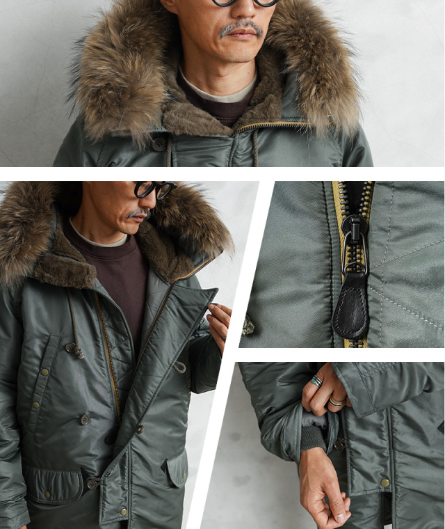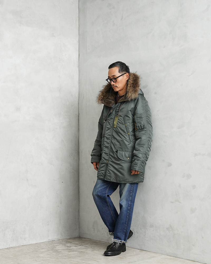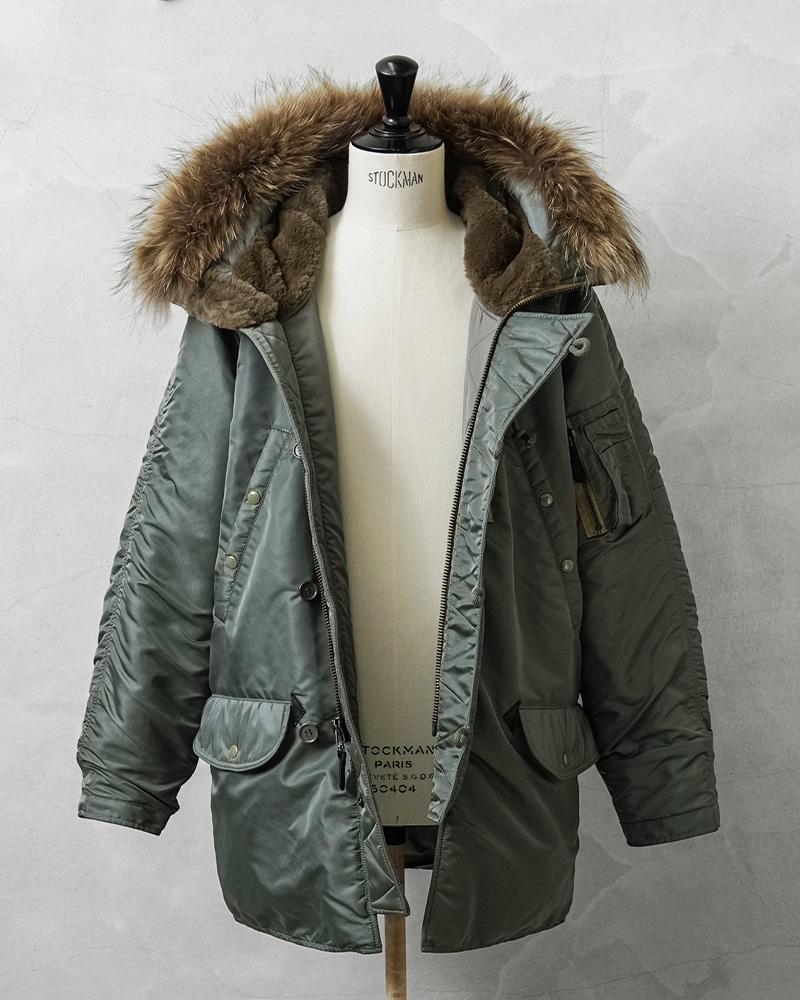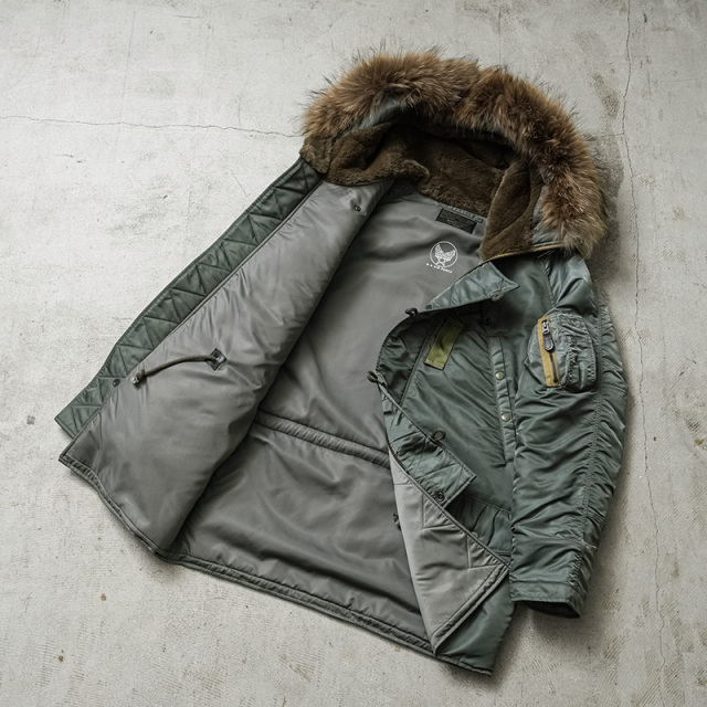 AVIREXからスペック、素材、フォルム、パーツ、にこだわり本物が持つ魅力に最大限近づけたVINTAGEシリーズが登場しました。その名もN-3B VINTAGE!N-3B VINTAGEは、N-3Aの改良型として誕生したN-2B(SPEC.MIL-J-6279D)を再現したモデルです。N-3シリーズはヘビーゾーン(-10℃~-30℃)モデルとして第二次世界大戦終結後に誕生。当初はパイロット用として開発されましたが、長い丈が狭いコックピット内での活動の妨げ、N-3Bの中期以降はグランドクルー用へと用途が変更されていきました。