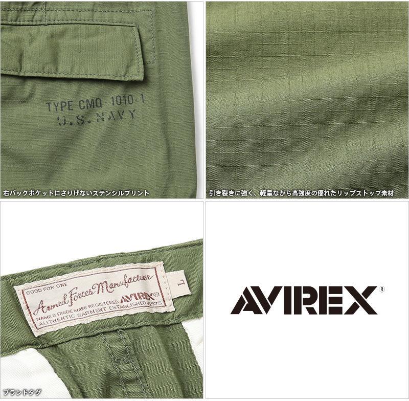 | 商品名 | AVIREX アビレックス 6186077 COTTON RIPSTOP(コットン リップストップ)ファティーグ ショートパンツ |