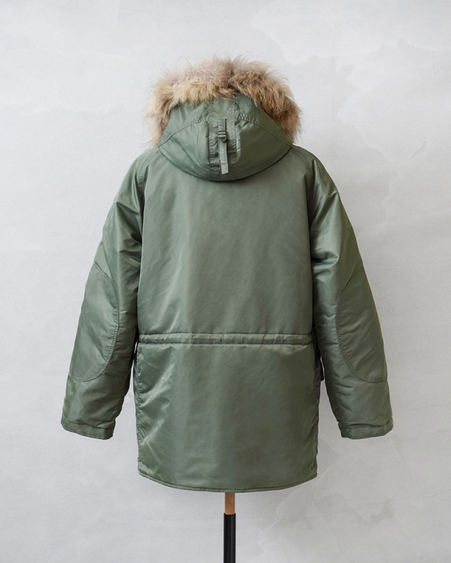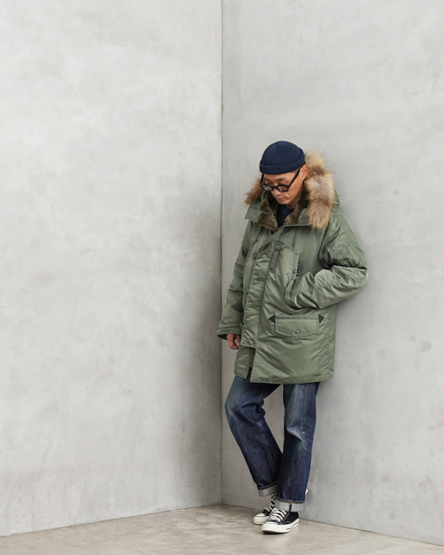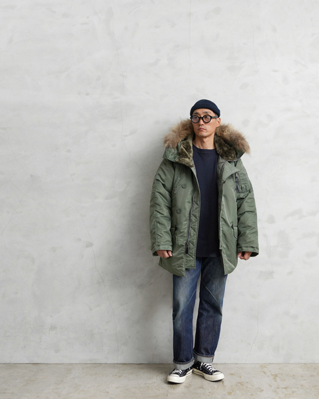 | 商品説明 | AVIREX THERMOLITE N-3B フライトジャケット COMMERCIAL MODEL リアルファーのご紹介です。 品名:N-3B COMMERCIAL 品番:7835952034 AVIREXより、N-3Bフライトジャケット COMMERCIAL MODEL リアルファーが入荷しました。 本物のフライトジャケットを作り続けてきたAVIREXが送り出す、タウンユースにマッチした一着。現代にマッチするシルエットにアップデートされています。フードにリアルファーが使用された上位モデルです。 N-3シリーズは第二次世界大戦中に開発・制式採用された着丈の長い極寒地用ナイロンフライトジャケット。実際には狭い操縦席での着用には向かず、グランドクルー(地上整備員)の屋外作業用に使用されていたという説もあります。エアフォース・ブルーのN-3Aを経て、セージグリーンのN-3Bへと発展。 軽くて保温性が高い中綿であるTHERMOLITE®(サーモライト)を使用し、タウンユースでの着やすさと保温性・機能性を確保しています。THERMOLITE®(サーモライト)のファイバー素材は断面が中空となっているため、中に取りこまれた空気の層によって高い保温性を発揮!暖かさは維持しながらウェアの厚みを軽減できるので、重ね着しても動きやすさもしっかり確保されています。更に皮膚からの余剰な水分を素早く吸収・蒸散するので着心地も抜群です。 コマーシャル(民間向け)用に生産されたこのモデルは、オリジナルと比べて見た目はすっきりとしたデザインですが、ややゆとりのあるレギュラーシルエットですので、冬の重ね着等で抜群の防寒性を誇ります。 ハンドウォーマーポケットやウエストのフラップポケット内はボアと起毛仕様なので寒い時期には手を温めるのに役立ちます。袖先部分は、インナーカフス仕様のリブを備えた二重構造で、フロントはジップとボタン式の前立てで開閉。左腕にはユーティリティポケット、ペンホルダーを装備しています。ボリュームのあるフードはファーの取り外しも可能で、裏側はボアなので首元を保温するのにも一役買っています。ウエスト内側のドローコードにより腰回りを絞る事が可能です。 ミリタリーアイテム王道のフライトジャケットをAVIREX独自の視点で表現した渾身の力作。現代のニーズに合わせモディファイしつつ、今も色褪せない王道のデザインがとても魅力的なアイテムです。コーディネートの主役として、ファッションの楽しさを感じさせてくれるお勧めの1枚です。 |