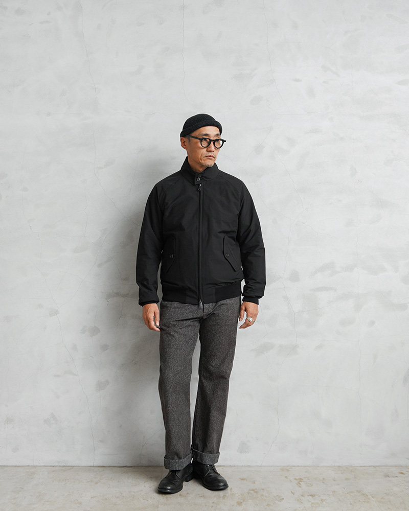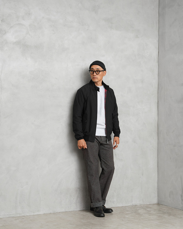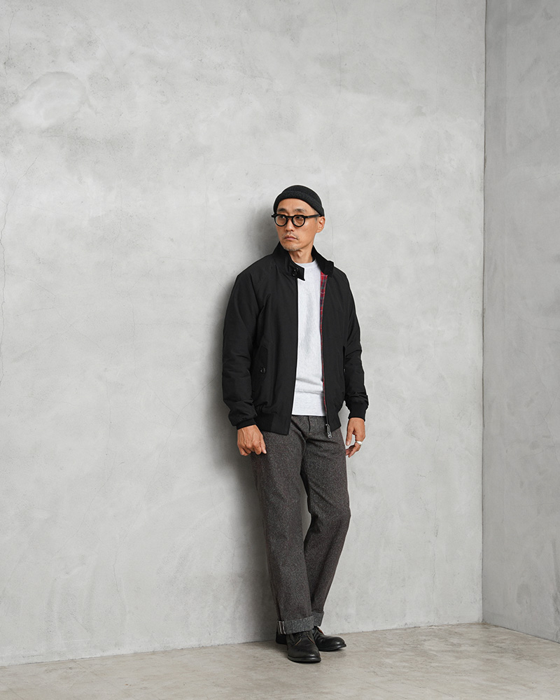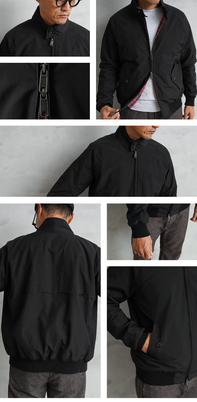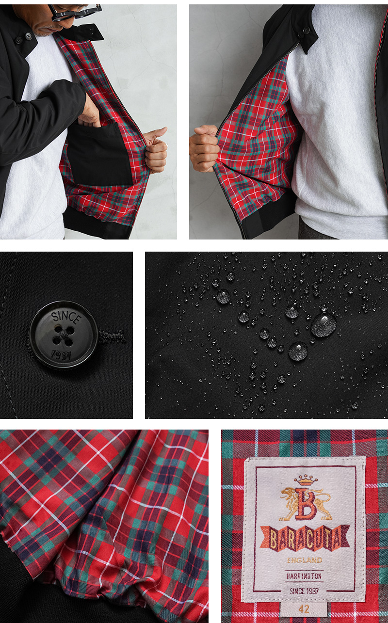 英国陸軍の支給用ジャンパーをベースにしたスイングトップ ジャケット「G9」。コットンブルゾンの定番でありBARACUTAの名品とも呼べるモデルが登場しました。高密度のポリエステル/コットンの混紡素材にテフロン加工を施し、撥水、防泥機能に優れた表地、動きやすいラグランスリーブ、ドッグイヤーカラー、雨滴を流し、通気性を良くするアンブレラバックヨーク、 そしてバラクータの特徴であるフレイザータータンの裏地。防風性を高める袖と裾のリブによって、全体のシルエットが引き締まり、カジュアルになりすぎない仕様になっています。