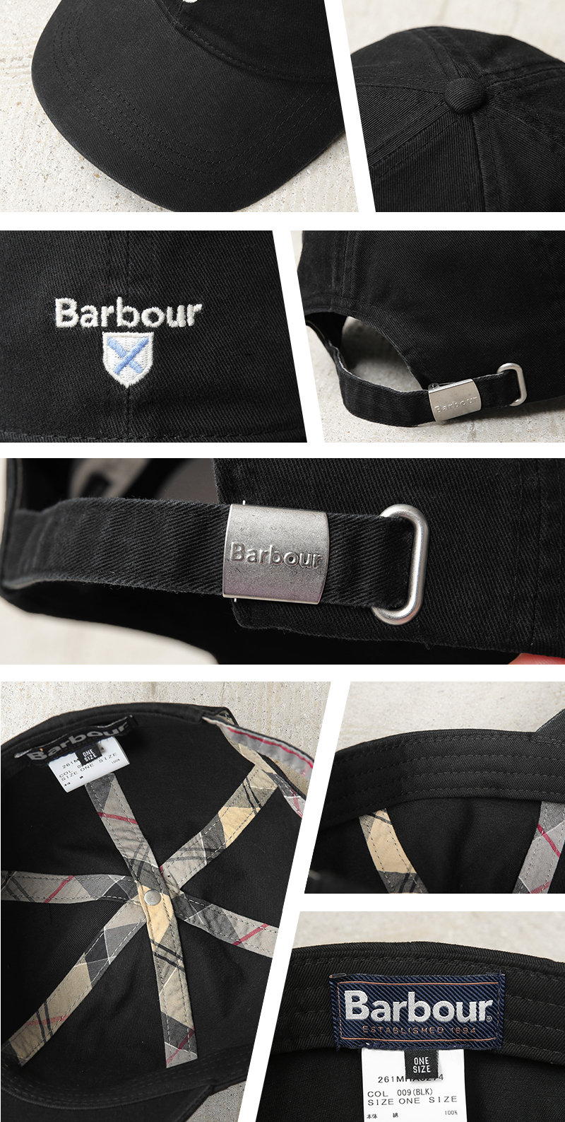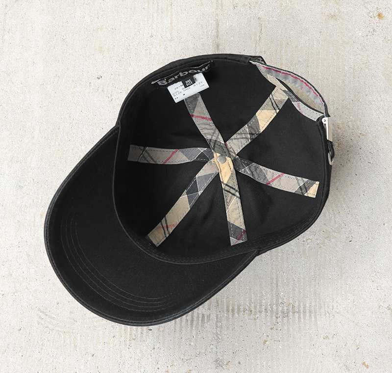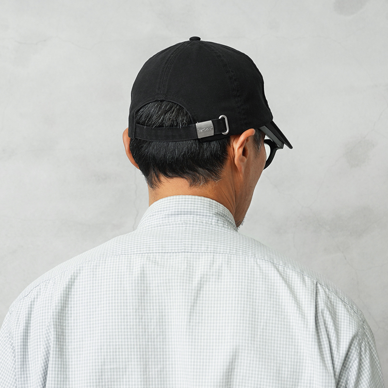 Barbourよりこなれたヴィンテージ感のある風合いが特徴の6パネルキャップが入荷しました。洗い加工を施したコットン100%ツイル素材を使用。製品洗いが施されているため、新品時から柔らかなフィット感を味わうことができます。フロントにBarbourのロゴとシールド(盾)の刺繍が施されたシンプルなデザインで、背面のメタルバックル付きストラップでサイズ調節可能。 一般的なキャップに比べやや深めの作りで、安定感のある被り心地が男女問わずユニセックスでご使用いただけます。裏側のテーピングにブランド伝統のタータンチェック柄があしらわれており、見えない部分にも英国ブランドらしいこだわりがあるのもポイント。カジュアルからトラッドまで幅広いスタイルに馴染む万能キャップです。 当店はBarbour正規販売店ですので安心してお買い求め下さい。