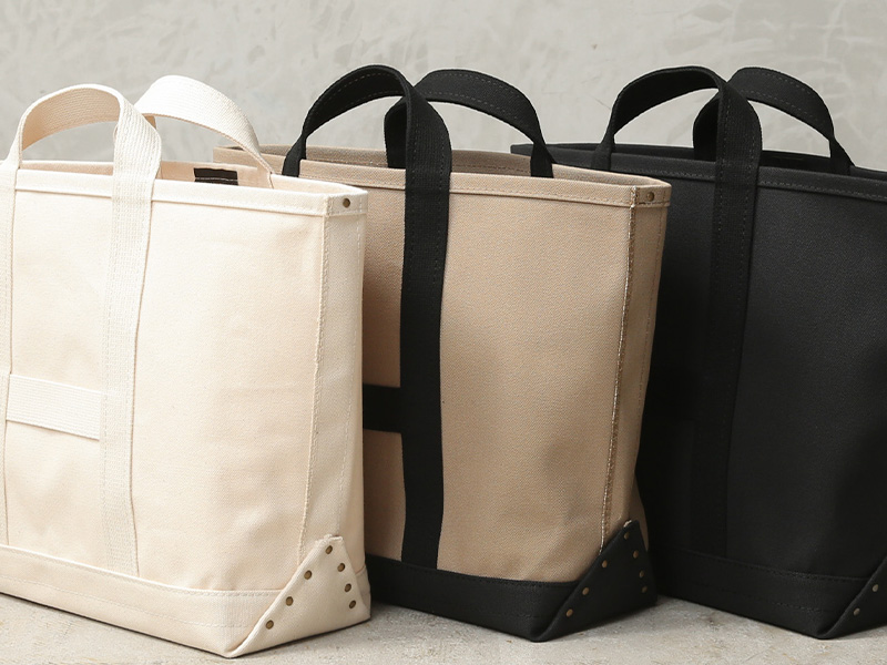 電気工事作業員が工具を入れるために作られたバッグをベースに現代の素材と技術で再構築したバークアウトサイダースらしいトートバッグが登場。生地には、太番手の糸で織り上げた生成りのキャンバスを採用。日本製の号帆布では表現できない、アメリカ特有の織りによるラフで素朴な表情が特徴です。パラフィン加工を施していないため、使い込むほどに風合いが増し、経年変化も楽しめる素材感に仕上がっています。