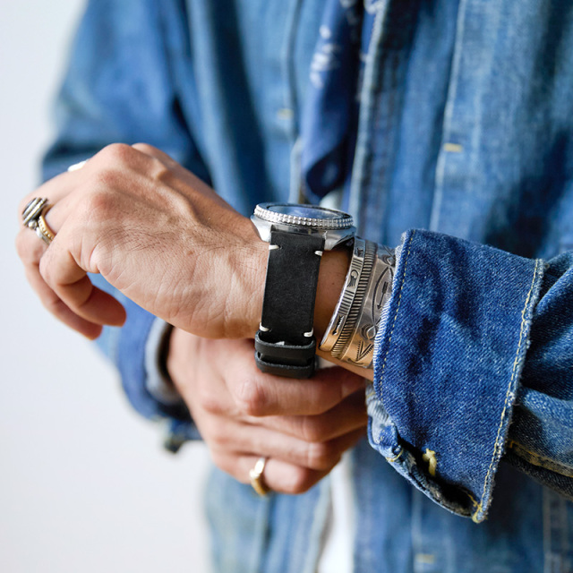 | 商品説明 | BARK OUTSIDERS バークアウトサイダーズ 2Peace Strap スクラッチレザー 2ピース ストラップ(腕時計用ベルト)日本製のご紹介です。 品名:2Peace Strap 「定番のレザーウォッチストラップ」 上下に分かれたクラシックタイプのウォッチストラップ。 経年変化で、表面にツヤが出て色が濃くなり風合いが増していく“ベジタブルタンニン イタリアンレザー”を使用し、革の表面にあえて傷を加え、立体感、自然な印象を与えてくれるスクラッチ加工が施されています。 あえてステッチを入れず糸止めにする事で高級感があり、ナチュラルな雰囲気。レザー自体しっかりとオイルが染み込んでいるのでコバの仕上げはあえて着色せずに磨きあげて仕上げています。 厚みを持たせた上質な革は、革本来の風合いを生かし、自動巻きウォッチなどの重厚なケースとの相性が抜群。 程よいアクセントとなる止め糸は、天然素材と調和するリネン糸を採用しています。 ビンテージウォッチに合わせたり、ナイロン製やメタル製ベルトの時計の予備にしたりと、お好みで付け替えが可能。本革の上品さや味わいが加わり、ワンランク上の手元に。 革独特の経年変化を楽しめる本物志向のウォッチストラップです。 Made in Japan ※撮影に使用した時計本体は付属しません。ストラップのみの販売です。 ※ケースのラグ側面に穴が開いていない時計にはこちらの製品は取り付けるのにバネ棒はずしが必要になります。 |