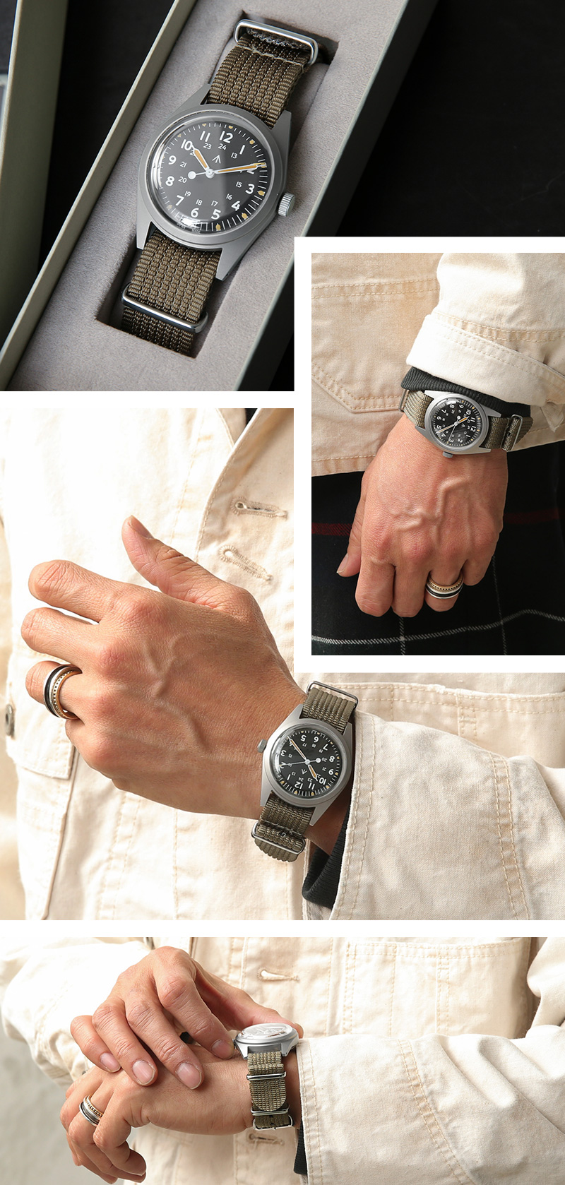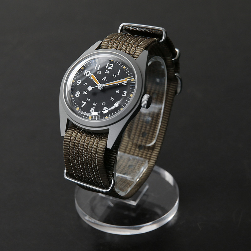 BARK OUTSIDERSより、シリアルナンバー入りの限定100個生産で、ヴィンテージやミリタリーをデザインモチーフとしたウォッチコレクションを展開する「NAVAL WATCH(ナバルウォッチ)」とのコラボレーションウォッチの第二弾が登場。1960年代初頭の米軍支給コンバットウォッチをベースに再構築。当時の設計思想を現代の日本的クラフトで昇華させた、“ハイエンド・ミリタリーウォッチ”です。アンティーク時計市場でも極めて高い人気を得ている1960年代のミリタリーウォッチ。ミルスペックに基づいて製造され、質実剛健な機能美が魅力のミリタリーウォッチをBARK OUTSIDERSらしい解釈で、モダナイズしたスペシャルコラボウォッチ。