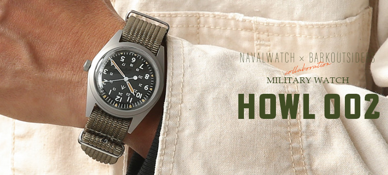 | 商品名 | BARK OUTSIDERS バークアウトサイダーズ HOWL002 NAVAL WATCH×BARKOUTSIDERS コラボ ミリタリーウォッチ(腕時計)日本製 |
