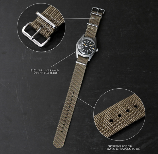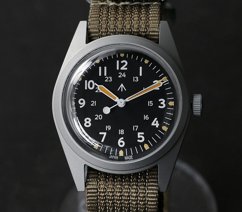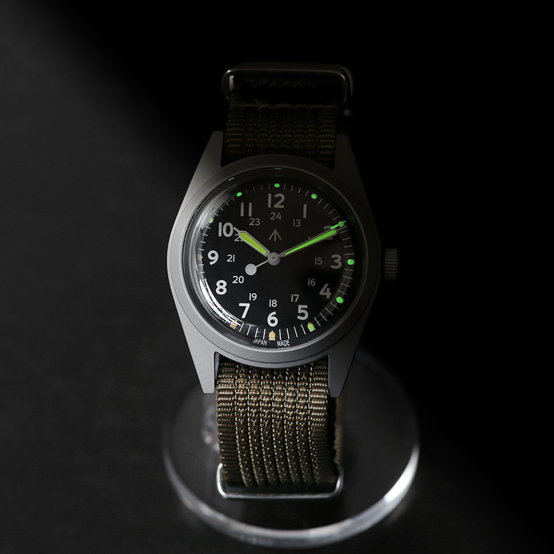 | 商品説明 | BARK OUTSIDERS バークアウトサイダーズ NAVAL WATCH×BARKOUTSIDERS コラボ ミリタリーウォッチ(腕時計)日本製のご紹介です。 品名:HOWL002 BARK OUTSIDERSより、シリアルナンバー入りの限定100個生産で、ヴィンテージやミリタリーをデザインモチーフとしたウォッチコレクションを展開する「NAVAL WATCH(ナバルウォッチ)」とのコラボレーションウォッチの第二弾が登場。 1960年代初頭の米軍支給コンバットウォッチをベースに再構築。当時の設計思想を現代の日本的クラフトで昇華させた、“ハイエンド・ミリタリーウォッチ”です。 ステンレスケース、インデックス、時分針全てBARK OUTSIDERSオリジナルで制作。 34mmのオリジナルの思想を踏まえつつ、38mm径という『長期的にベーシック』と考えるサイズを採用し、金属特有の艶を抑えたマットブラスト仕上げの医療用にも使用される316Lステンレススチールのケースで堅牢さと反射抑制を両立させています。 クラシックな表情ながら現代的耐傷性を備えたドーム型サファイアガラスの風防、経年感を意識したヴィンテージ風トーンの時分針やインデックスは視認性を重視しつつも味のある仕上がり。リュウズにはブロードアローの凹凸表現を入れ、ハイエンド・ミリタリーモデルとしての象徴性を演出しています。 バンド部分は、軽量で耐久性の高いBARKOUTSIDERSのGenuine Nato Strap NATOストラップを採用。ベトナムウォッチのDNAを体現しつつ、カジュアルな中にも丁寧に仕上げられたナイロンテープの上品な光沢感が、ワンランク上の手元に魅せてくれます。 アンティーク時計市場でも極めて高い人気を得ている1960年代のミリタリーウォッチ。ミルスペックに基づいて製造され、質実剛健な機能美が魅力のミリタリーウォッチをBARK OUTSIDERSらしい解釈で、モダナイズしたスペシャルコラボウォッチ。 ベーシックで機能的なミリタリーウォッチでありながら、どこか高級感を感じさせる一本は、流行に左右されず長く使える大人の腕時計。オン・オフを問わず、さりげなく個性を引き立てます。 Made in Japan 仕様・機能 ・ TMI(Seiko Instruments系)自動巻き・ノンデイトの3針ムーブメント NH38 ・シリアルナンバー入り ※シリアルナンバーはご指定できません。 |