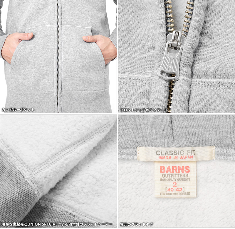| 商品名 | BARNS OUTFITTERS バーンズ アウトフィッターズ BR-3010 ヴィンテージ ジップパーカ COZUN(コズン) スウェット |