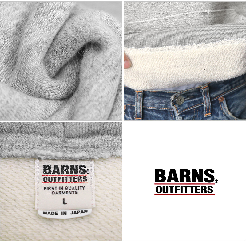 | 商品名 | BARNS OUTFITTERS バーンズ アウトフィッターズ BR-8442 TSURI-AMI(吊り編み)ワイド プルオーバー スウェットパーカー 日本製 |